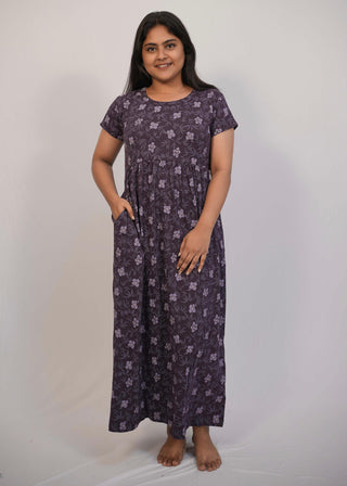 PURPLE TRIBAL | NON-FEEDING MAXI – SHORT SLEEVES | ANKLE LENGTH MAXI