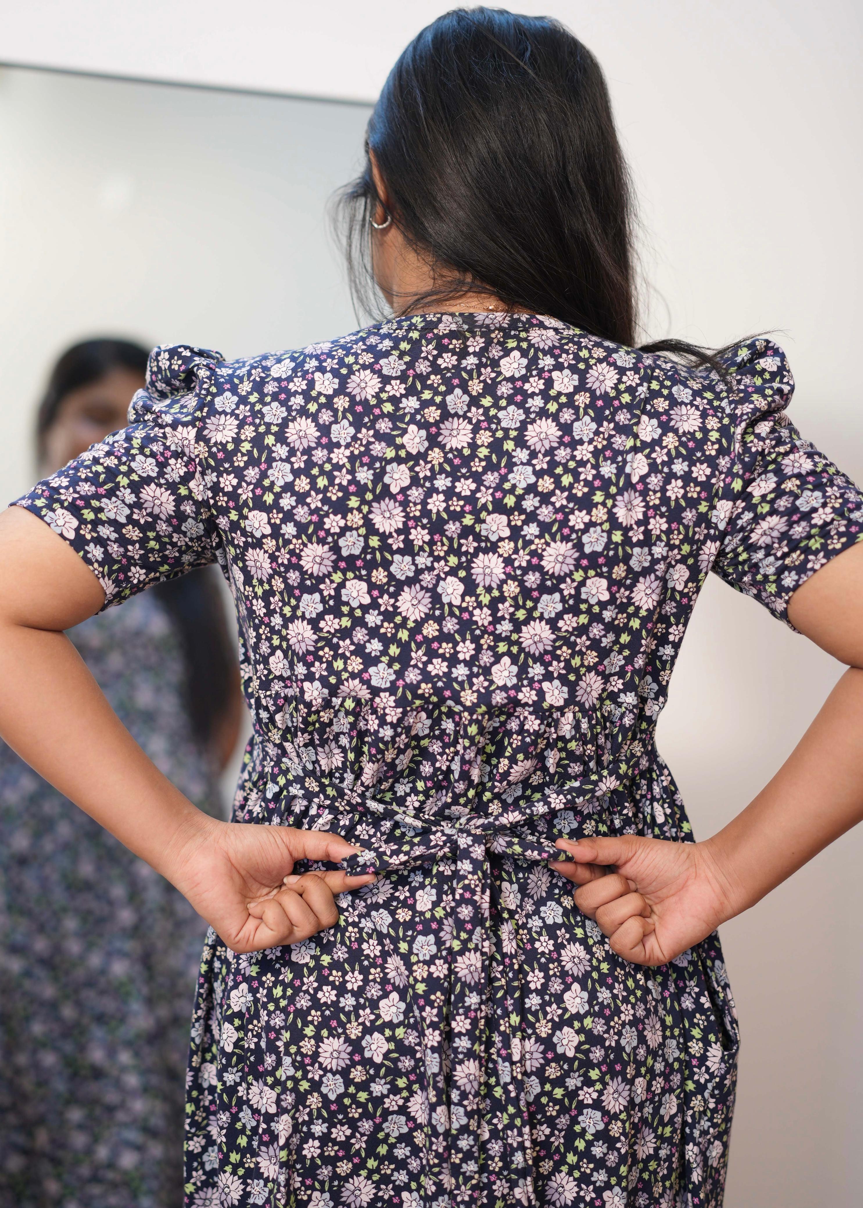 BLUE MULTI FLORAL | ZIPLESS MATERNITY MAXI-PUFF SLEEVES | FULL LENGTH MAXI