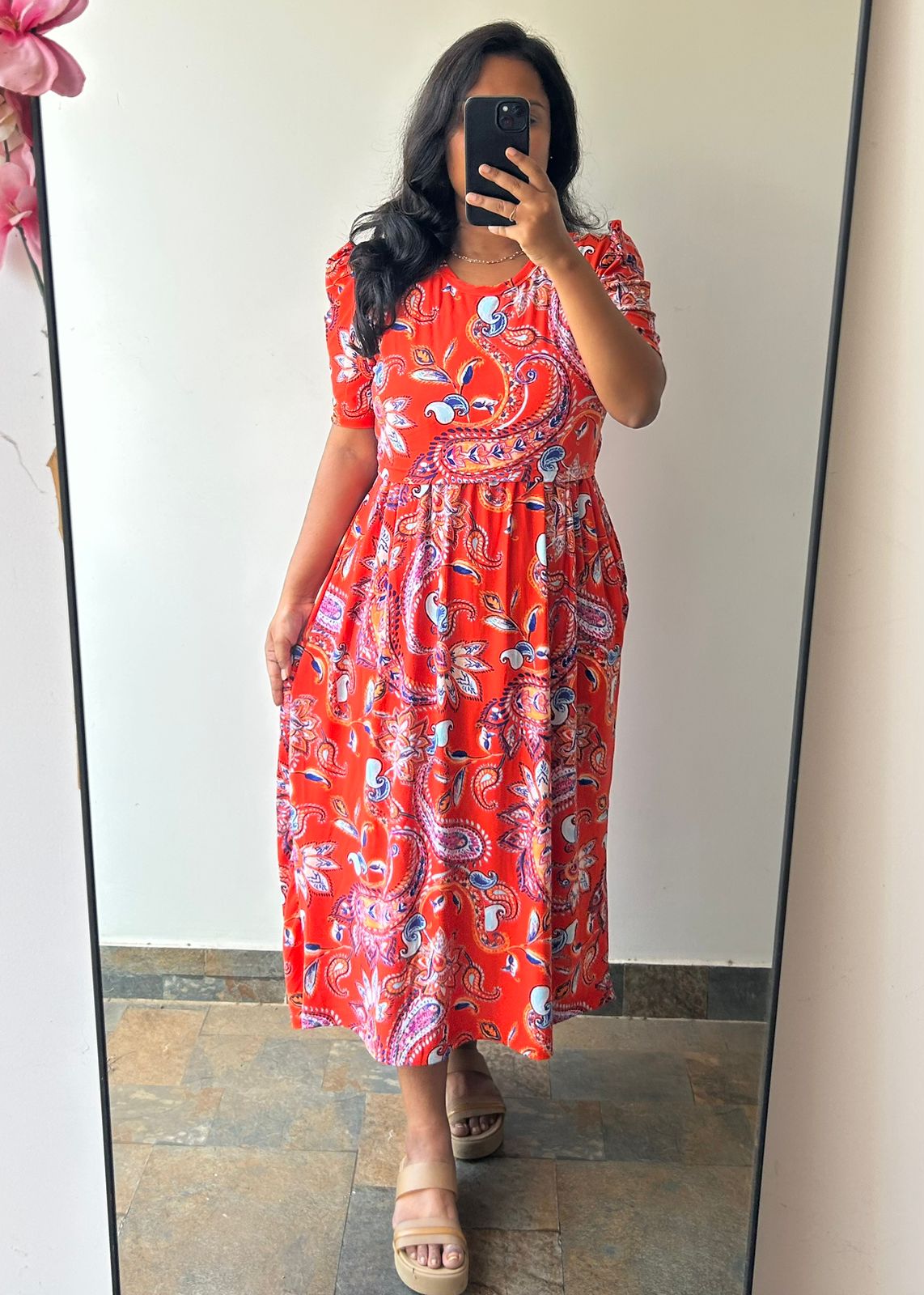 ORANGE MANGO | ZIPLESS MATERNITY MAXI-PUFF SLEEVES | ANKLE LENGTH MAXI
