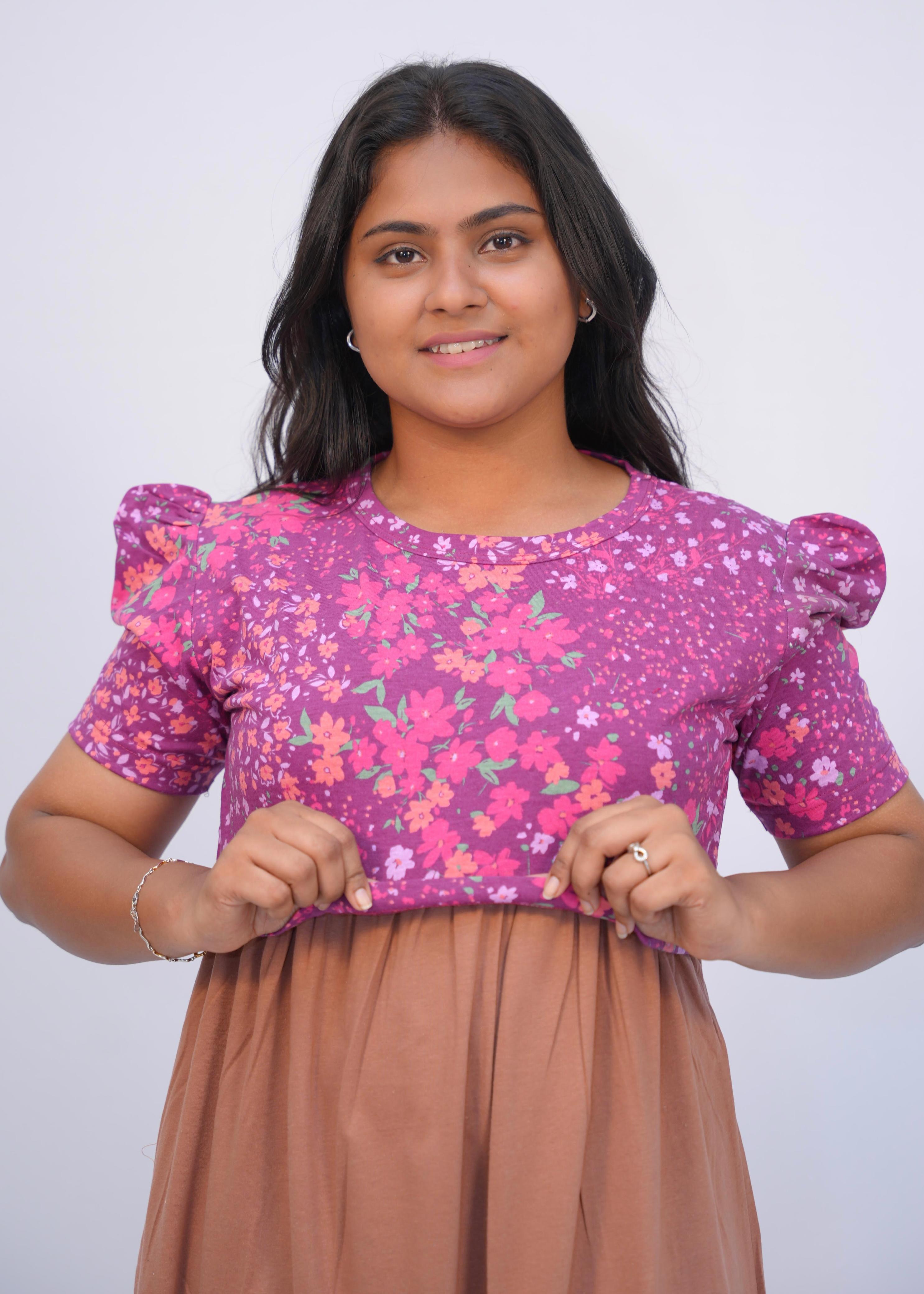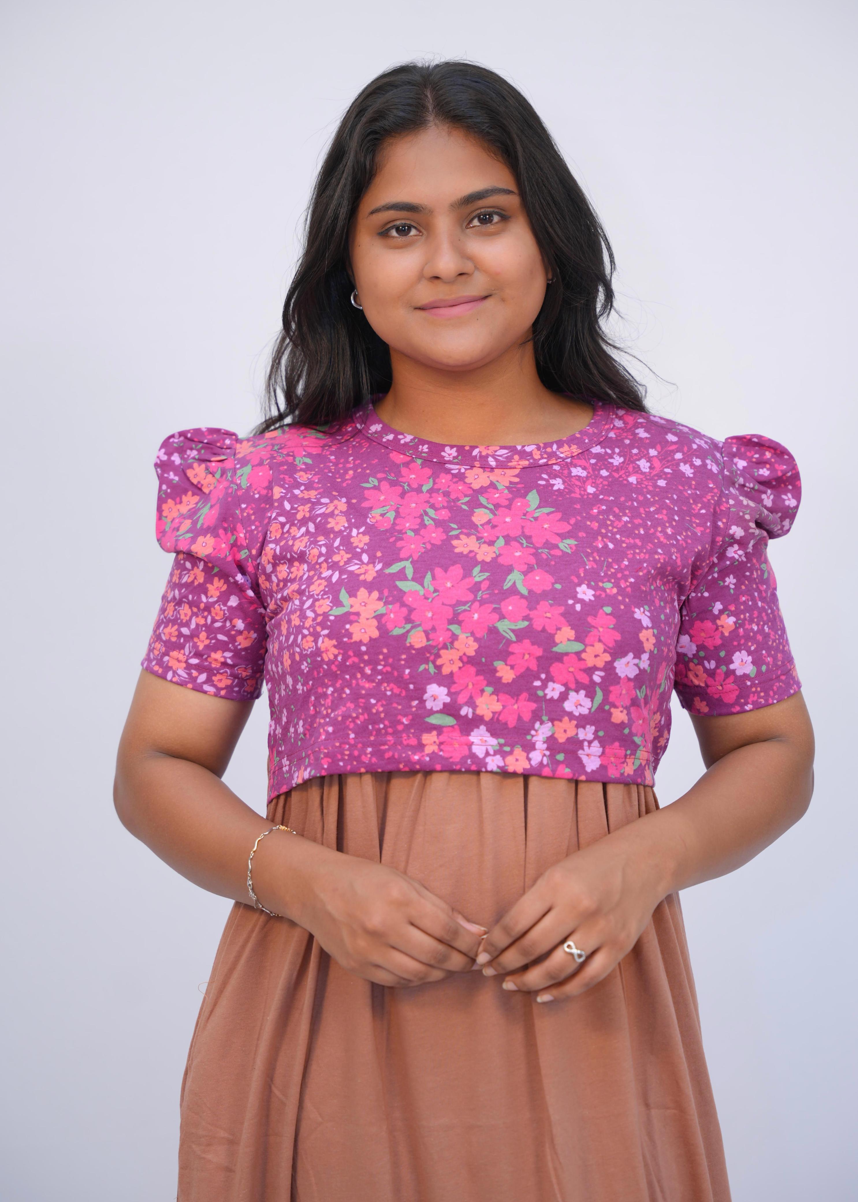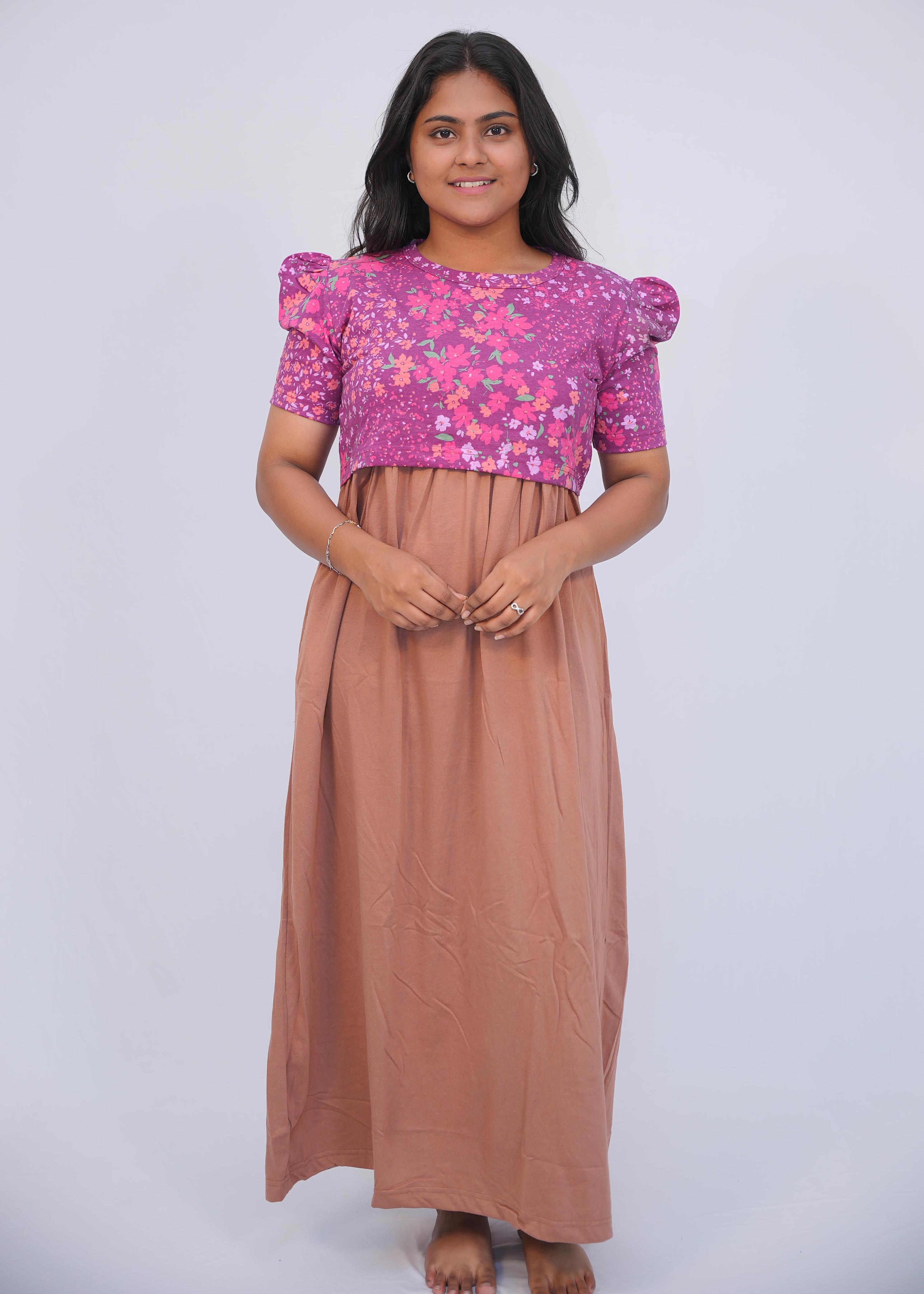 PINK FLORAL DOUBLE SHADE | ZIPLESS MATERNITY MAXI-PUFF SLEEVES | ANKLE LENGTH MAXI