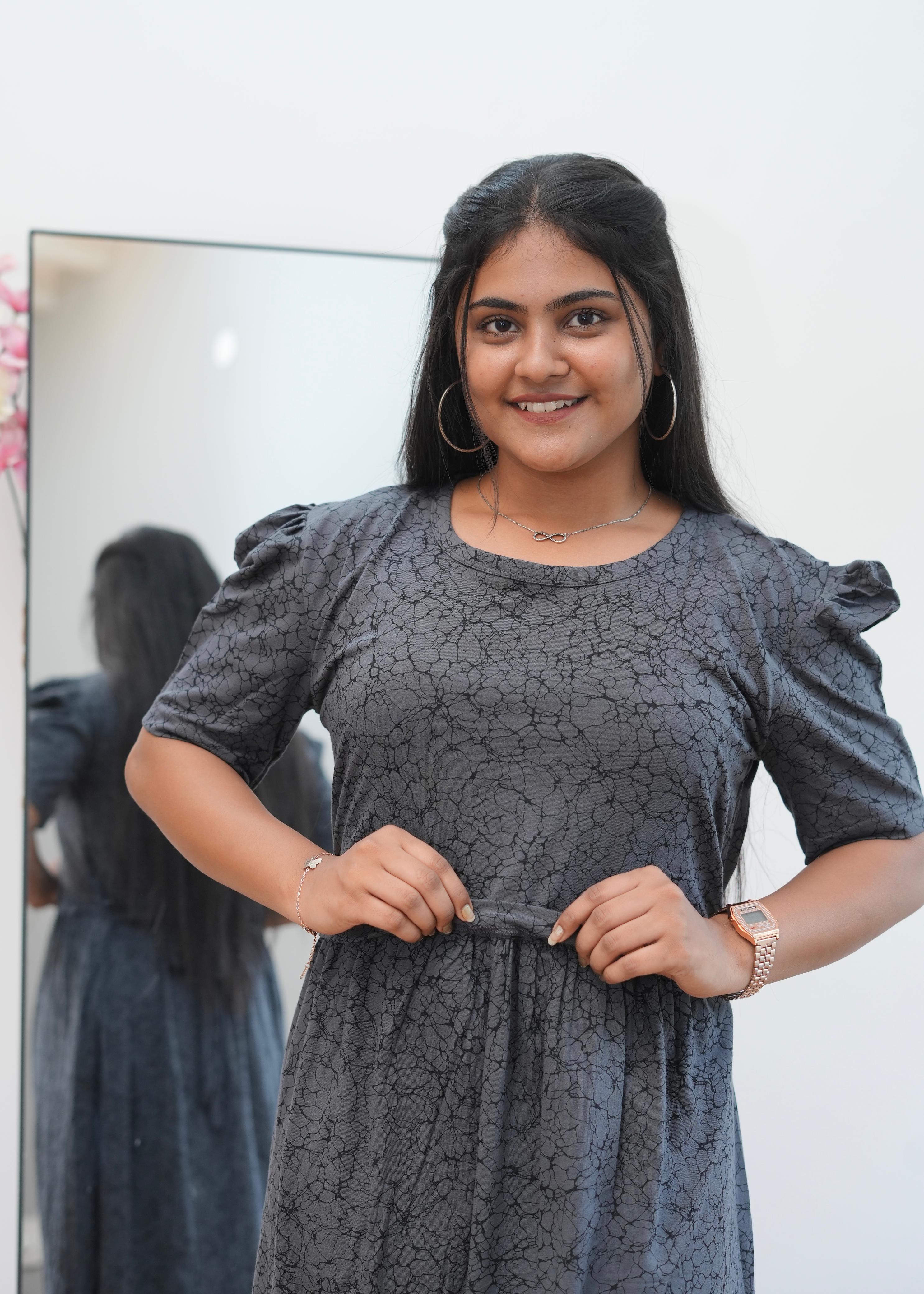 BLACK PEBBLES| ZIPLESS MATERNITY MAXI-PUFF SLEEVES | ANKLE LENGTH MAXI