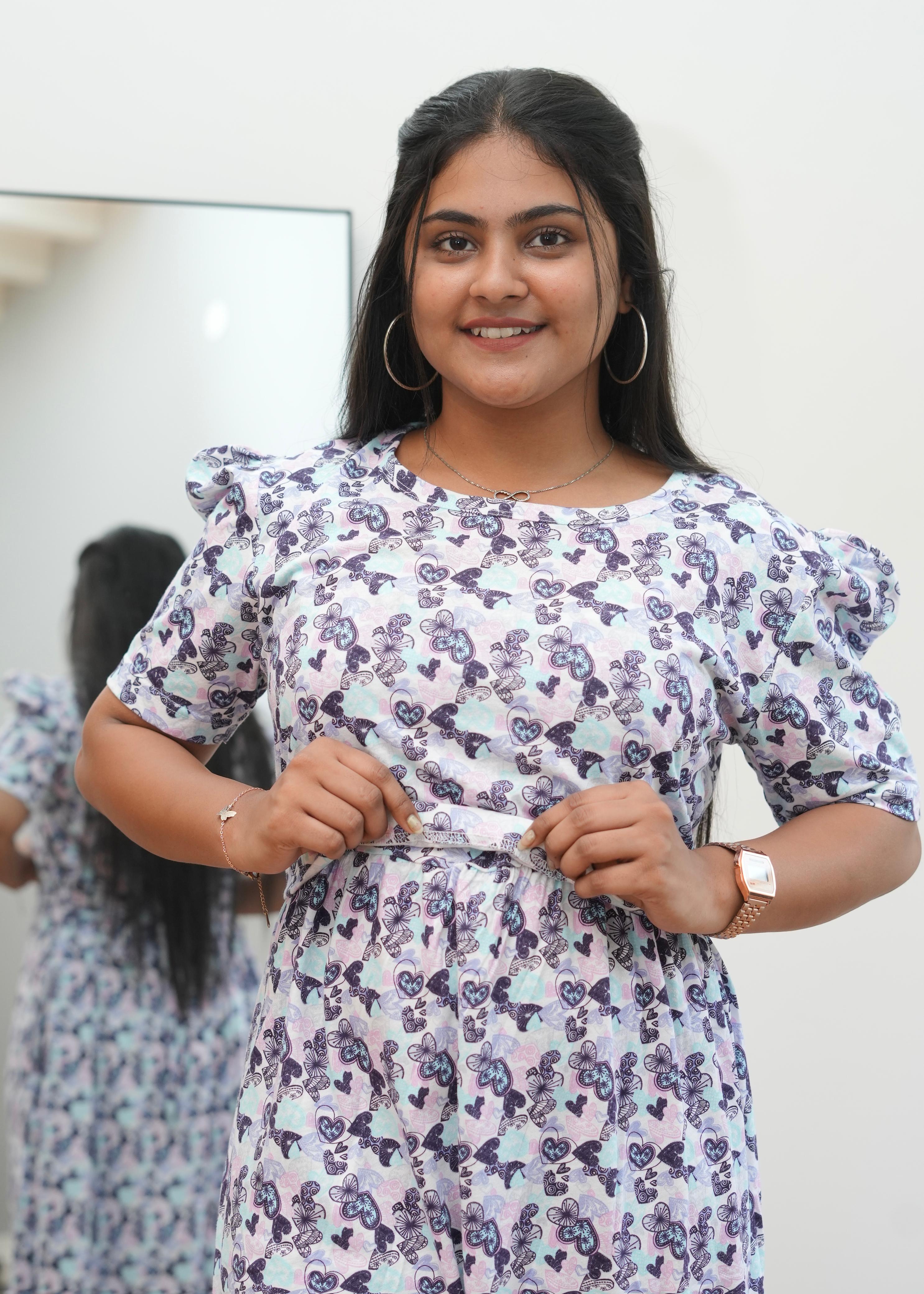 WHITE HEARTS | ZIPLESS MATERNITY MAXI-PUFF SLEEVES | ANKLE LENGTH MAXI