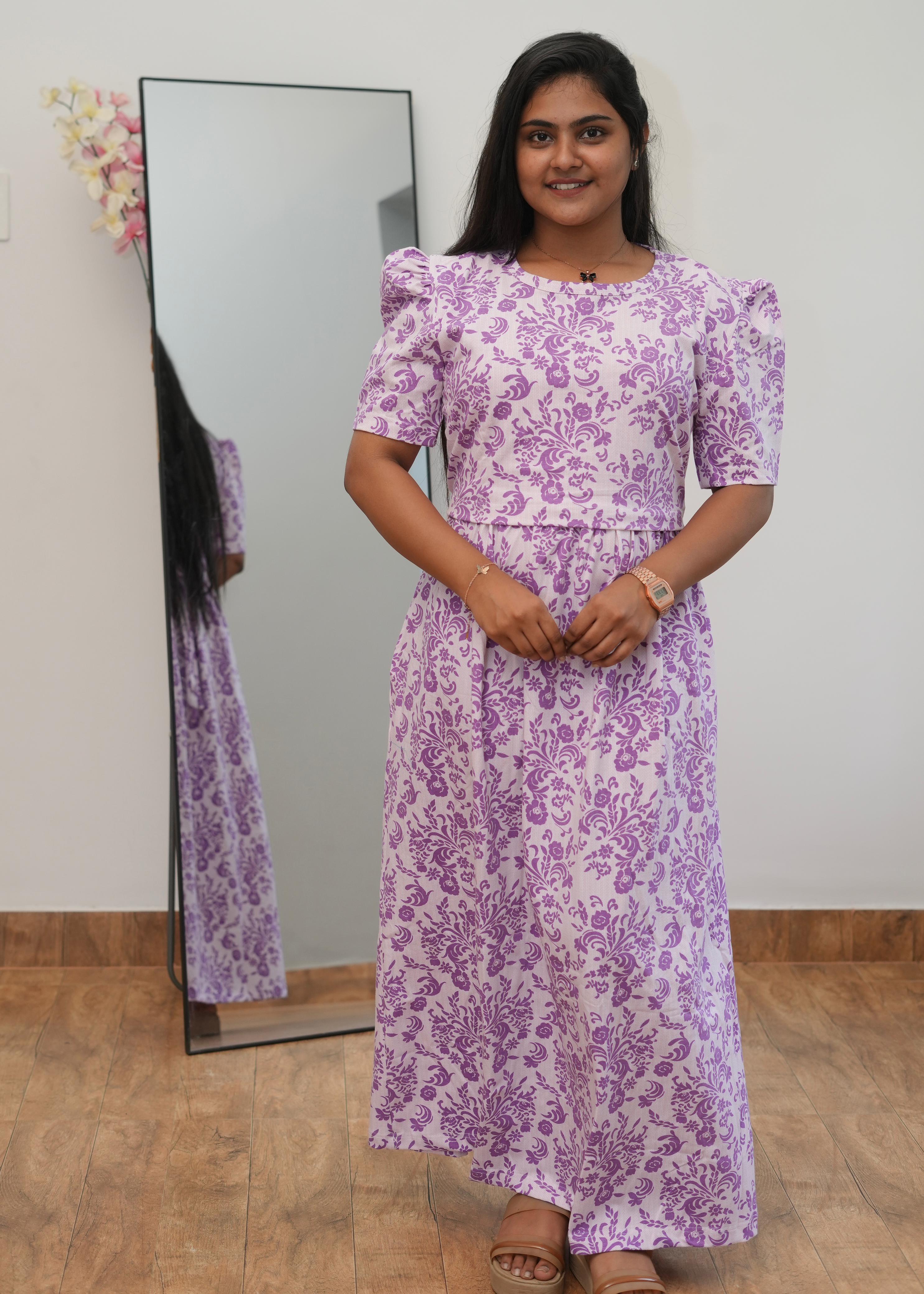 VIOLET FLORAL | ZIPLESS MATERNITY MAXI-PUFF SLEEVES | ANKLE LENGTH MAXI