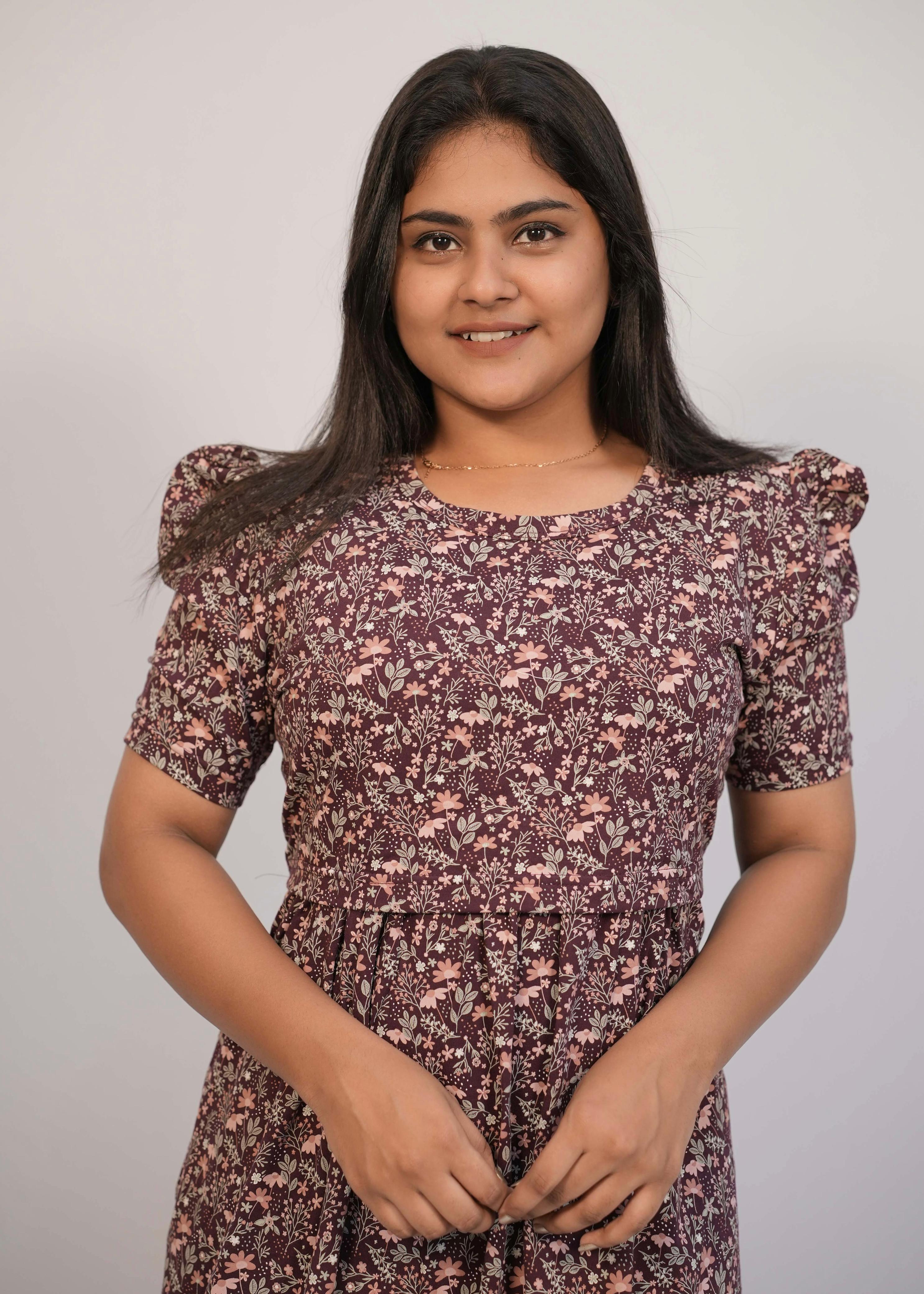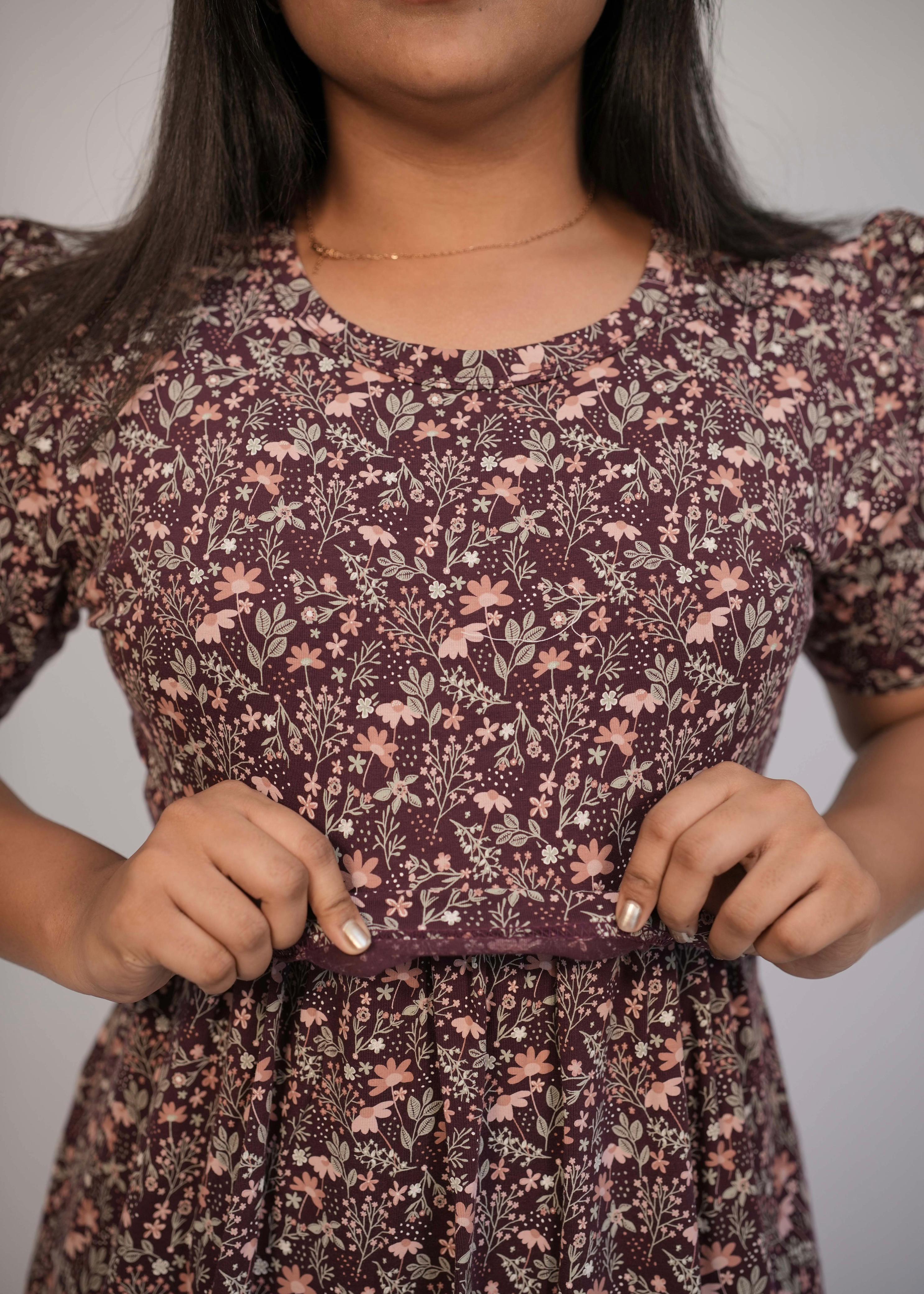 DARK MAROON FLORAL | ZIPLESS MATERNITY MAXI-PUFF SLEEVES | FULL LENGTH MAXI