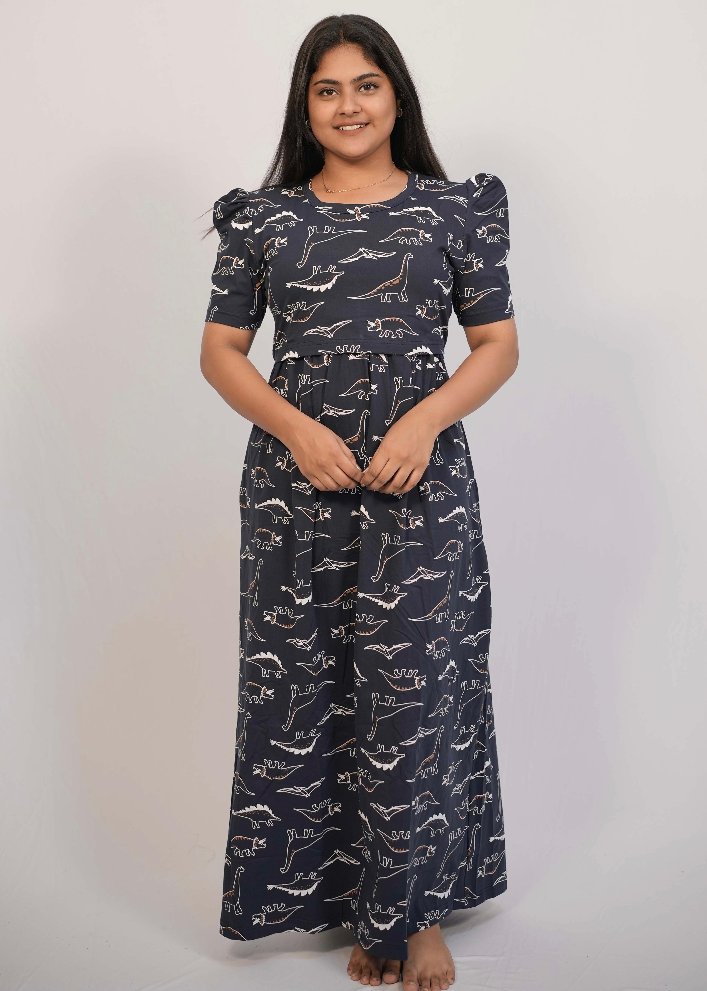 DINO | ZIPLESS MATERNITY MAXI-PUFF SLEEVES | FULL LENGTH MAXI