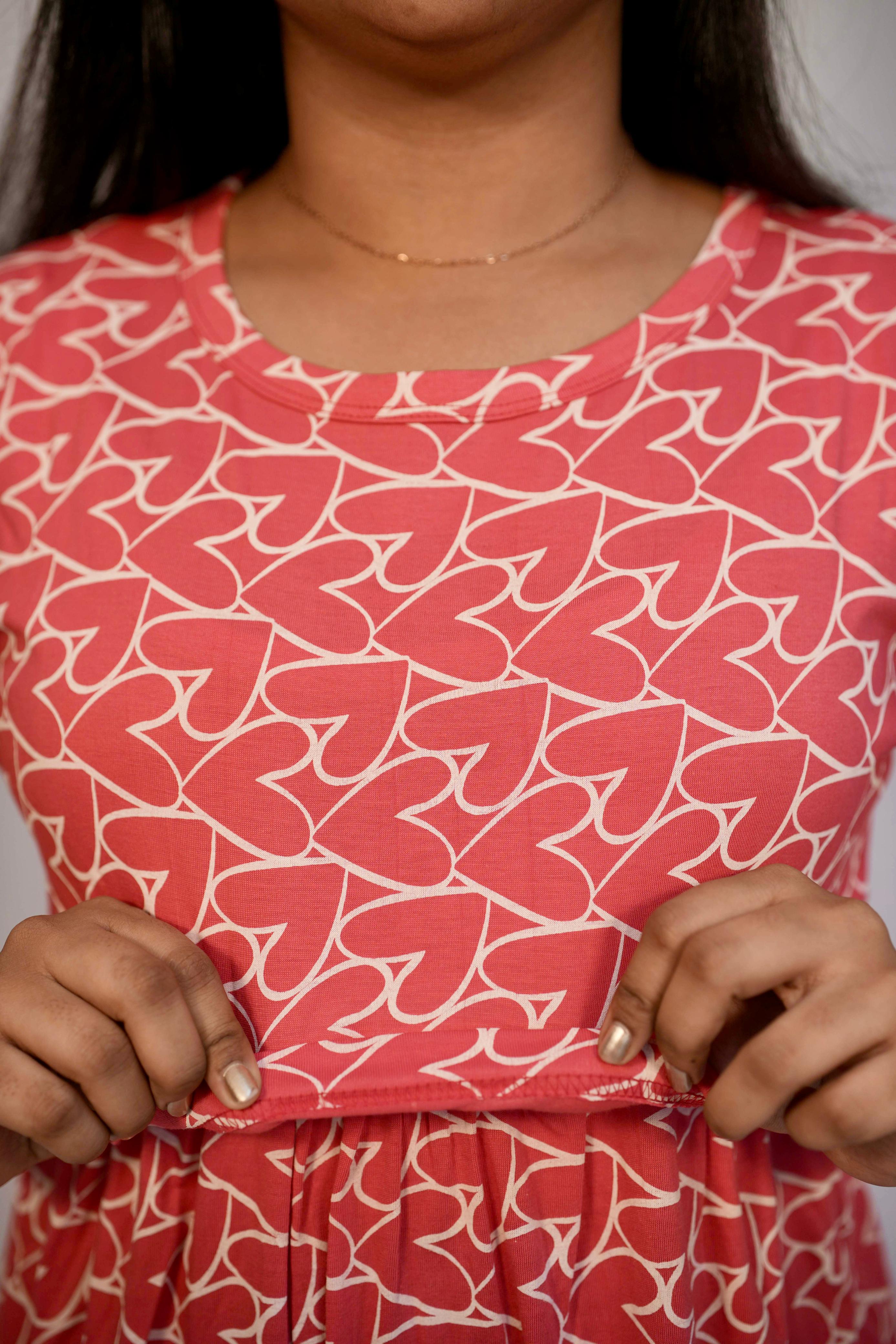 PINK HEARTS | ZIPLESS MATERNITY MAXI-PUFF SLEEVES | FULL LENGTH MAXI