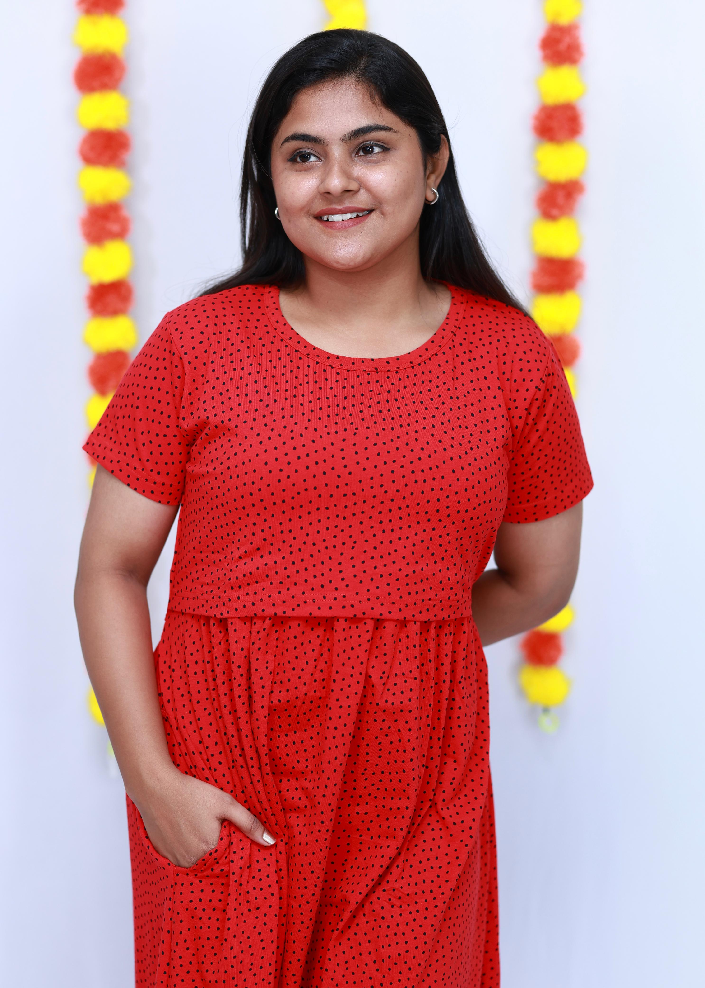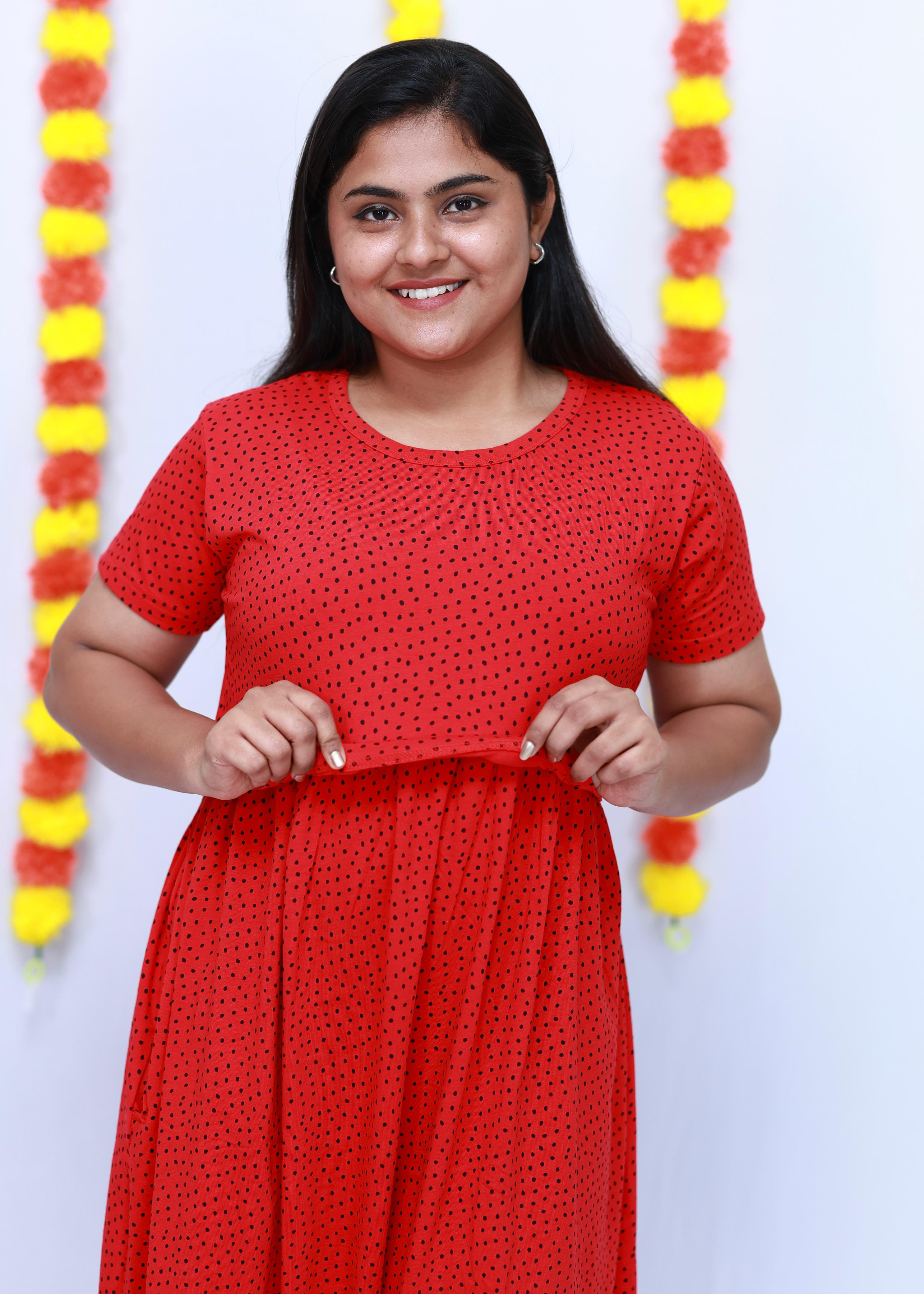 RED BERRY | ZIPLESS MATERNITY MAXI-SHORT SLEEVES | FULL LENGTH MAXI