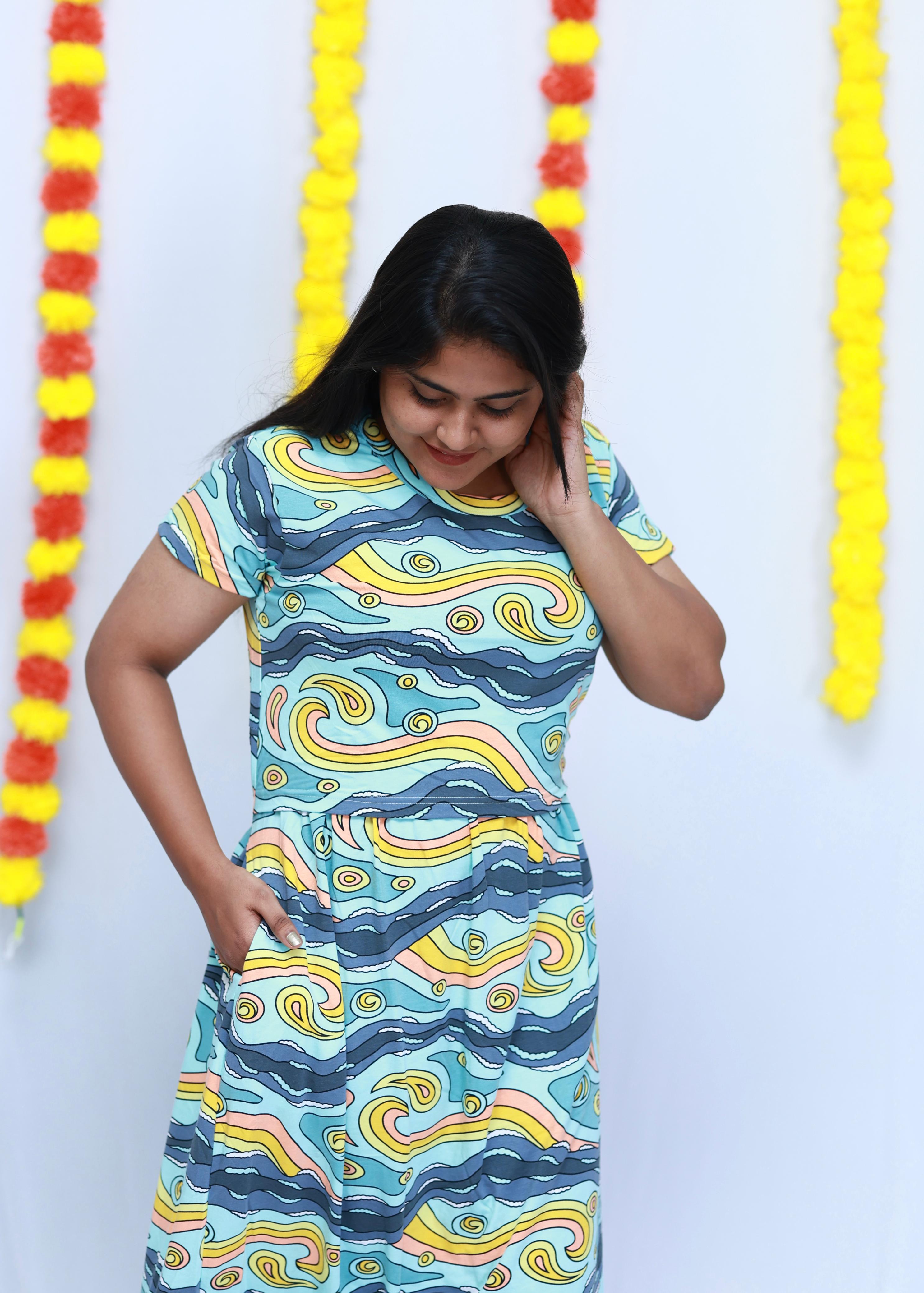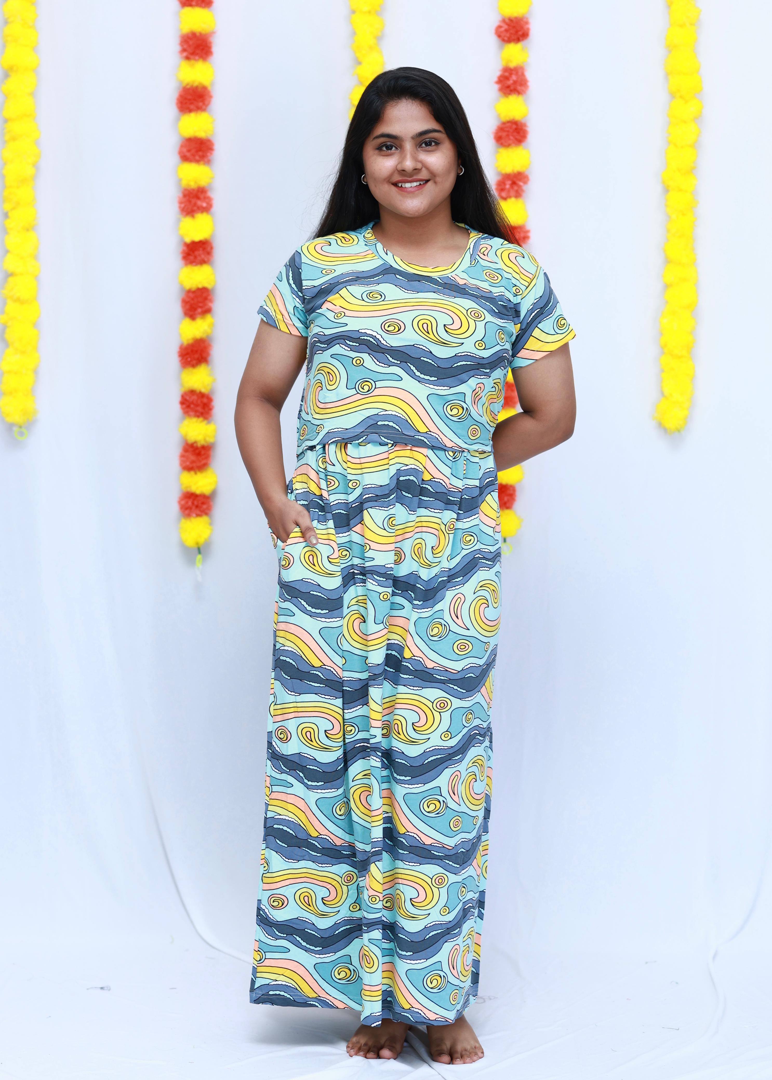OCEAN WAVES | ZIPLESS MATERNITY MAXI-SHORT SLEEVES | ANKLE LENGTH MAXI