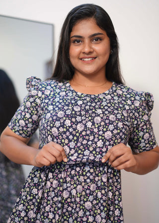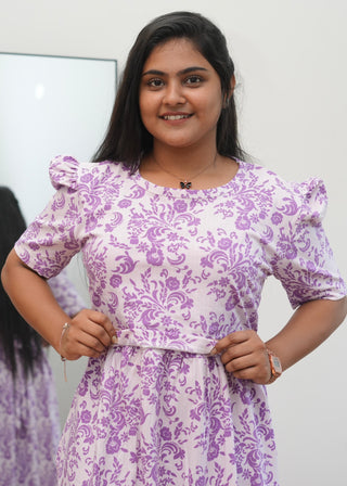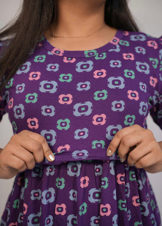 VIOLET FLORAL | ZIPLESS MATERNITY MAXI-PUFF SLEEVES | ANKLE LENGTH MAXI