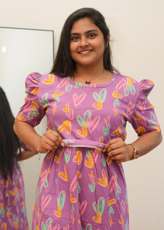 PURPLE HEART | ZIPLESS MATERNITY MAXI-PUFF SLEEVES | ANKLE LENGTH MAXI