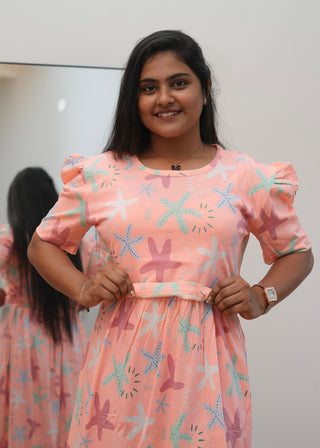 PEACH STAR | ZIPLESS MATERNITY MAXI-PUFF SLEEVES | ANKLE LENGTH MAXI
