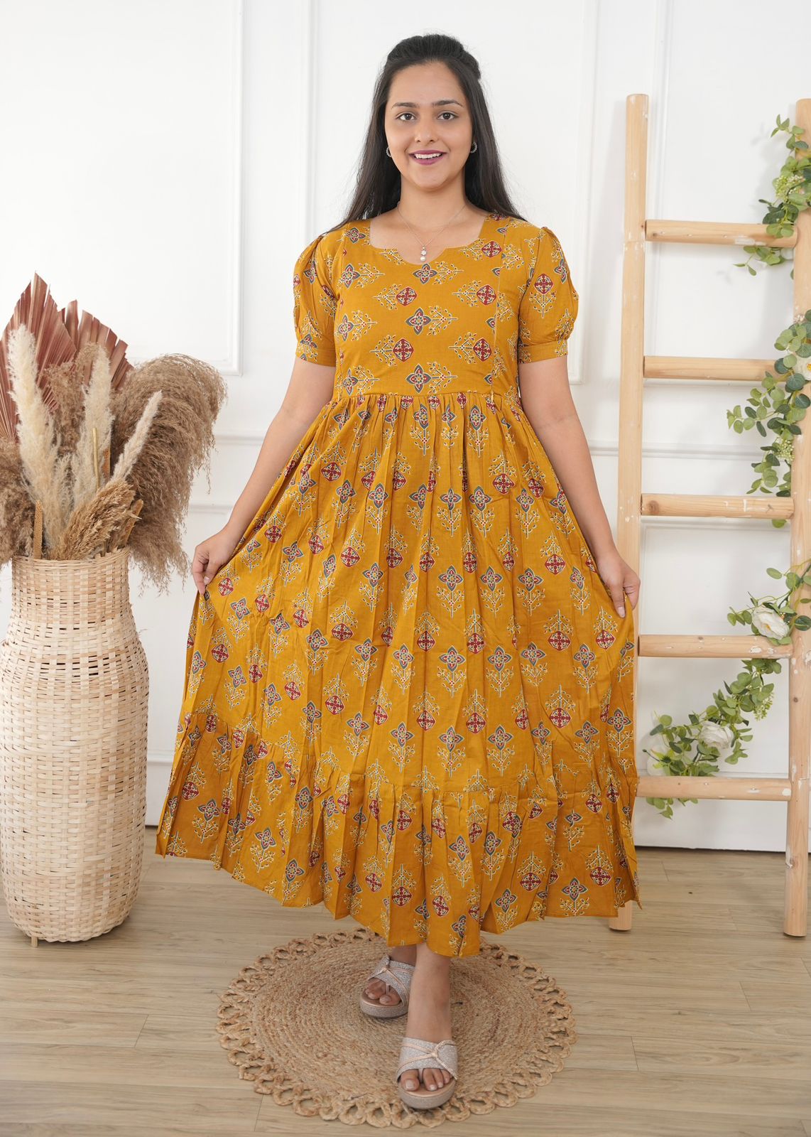 MUSTARD TRELIS | MATERNITY COTTON MAXI ANKLE LENGTH