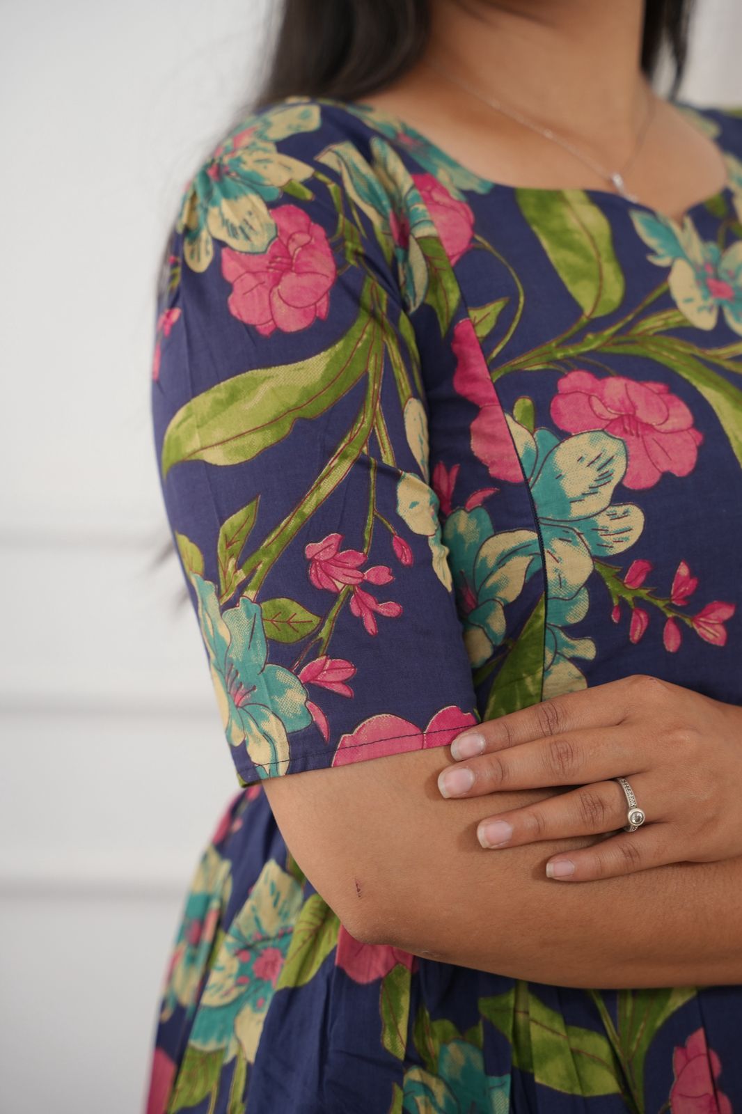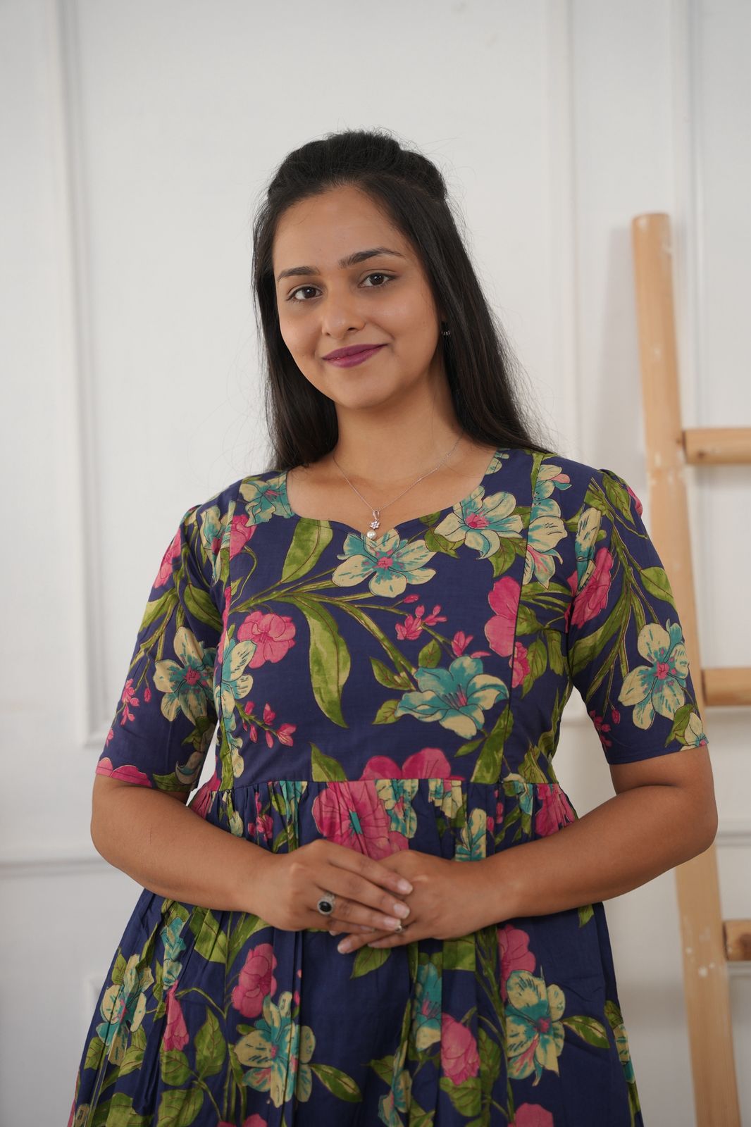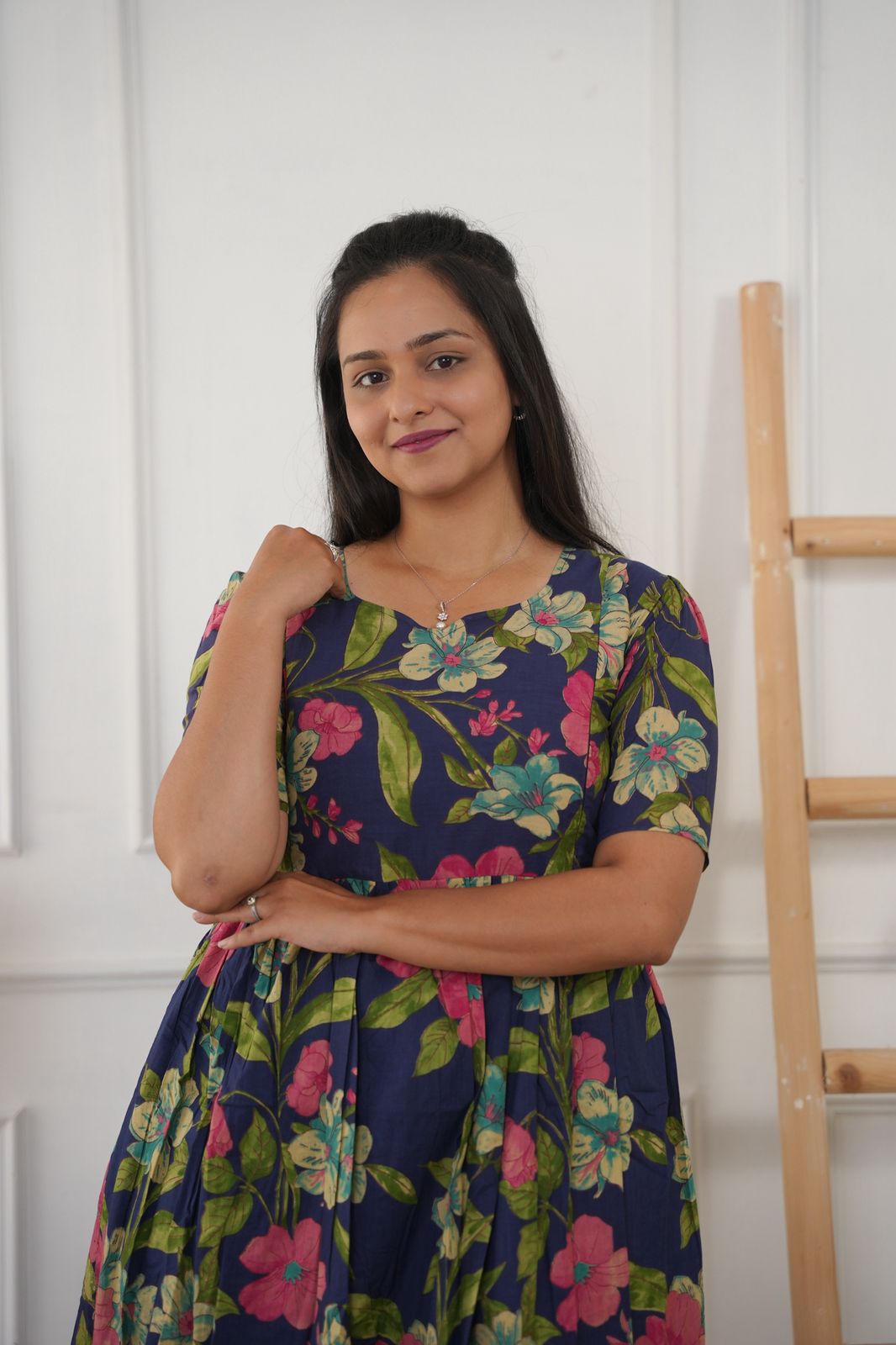 NAVY PINK FLORA | MATERNITY COTTON MAXI ANKLE LENGTH