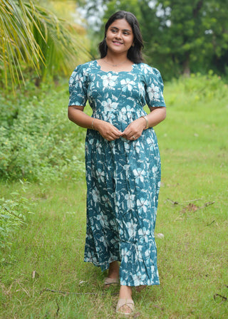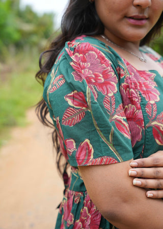 GREEN HIBISCUS | MATERNITY KANDHA COTTON MAXI ANKLE LENGTH