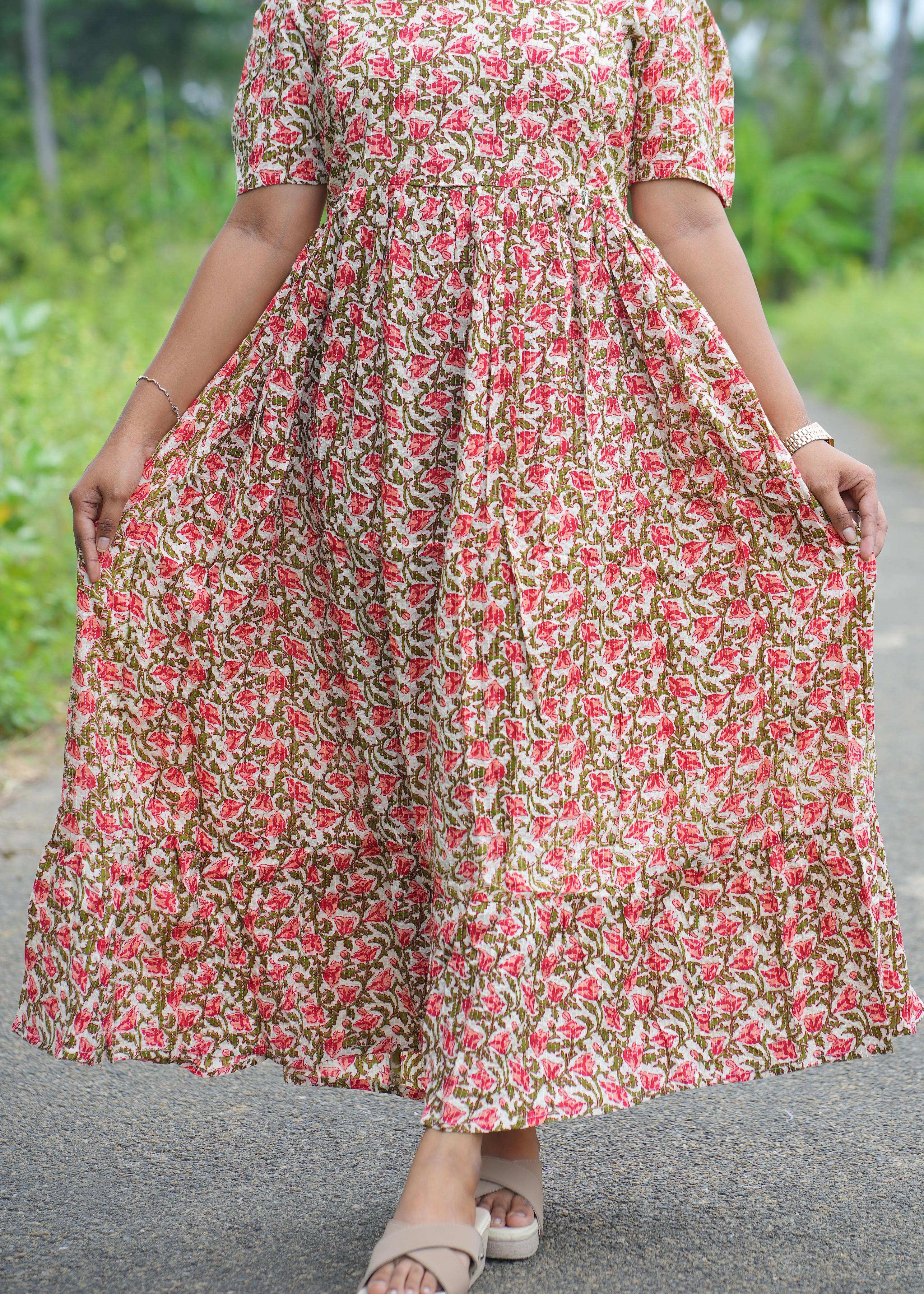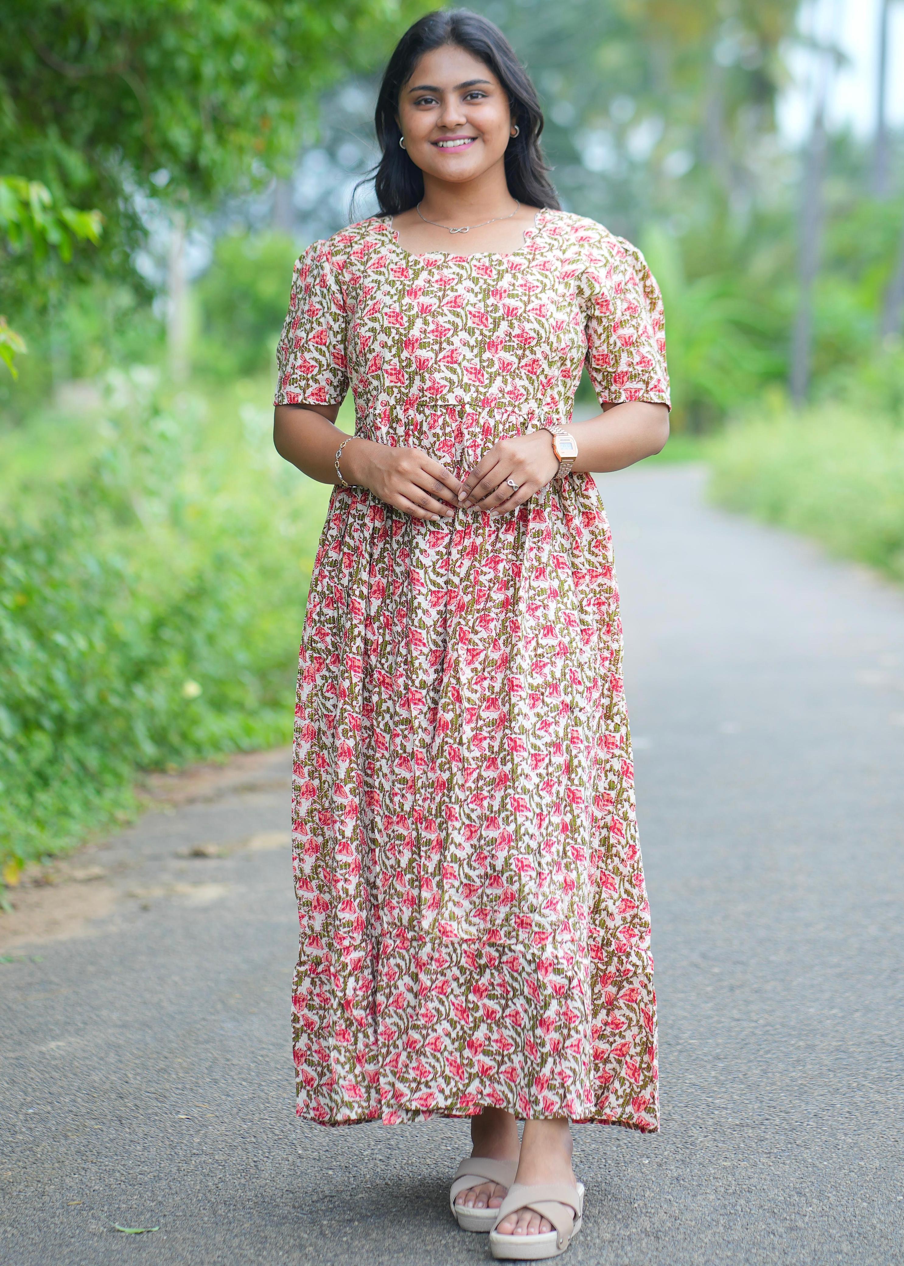 TINY FLORA | MATERNITY KANTHA COTTON MAXI ANKLE LENGTH