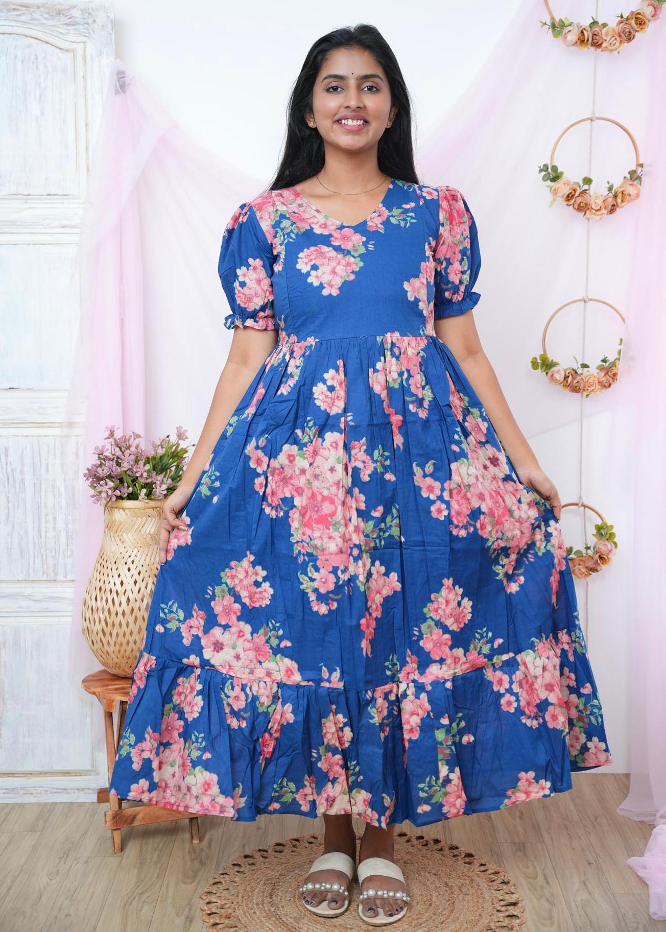 BLOOMY BLUE | MATERNITY COTTON MAXI ANKLE LENGTH