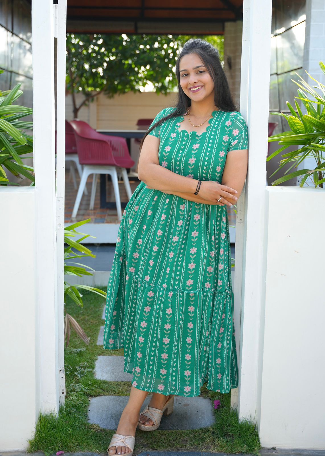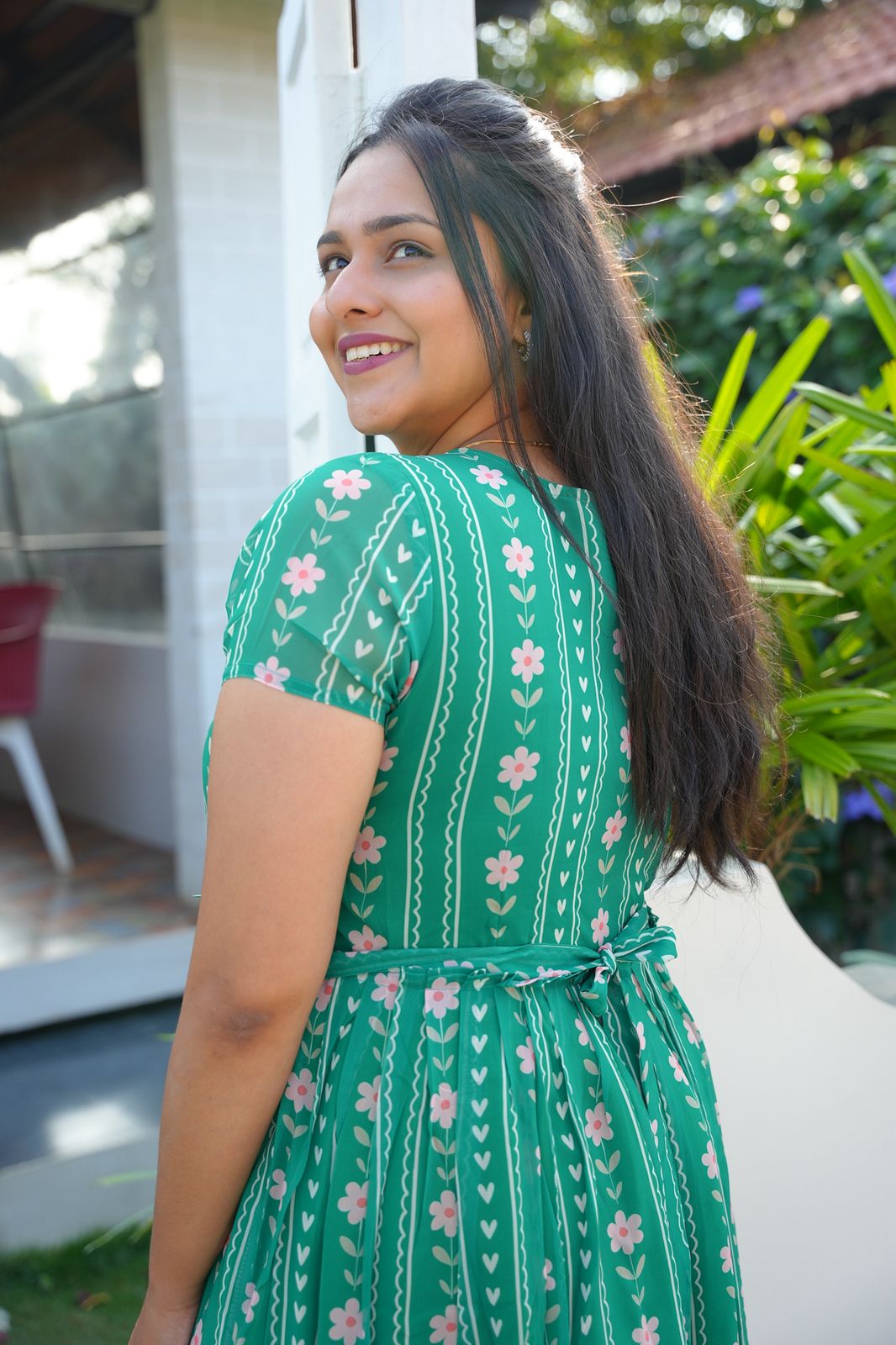 GREEN FLORAL STRIPE | MATERNITY GEORGETTE MAXI ANKLE LENGTH
