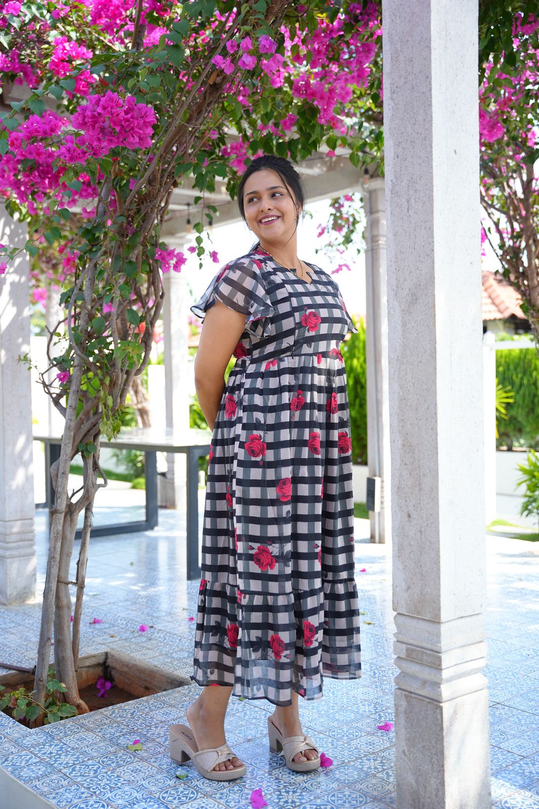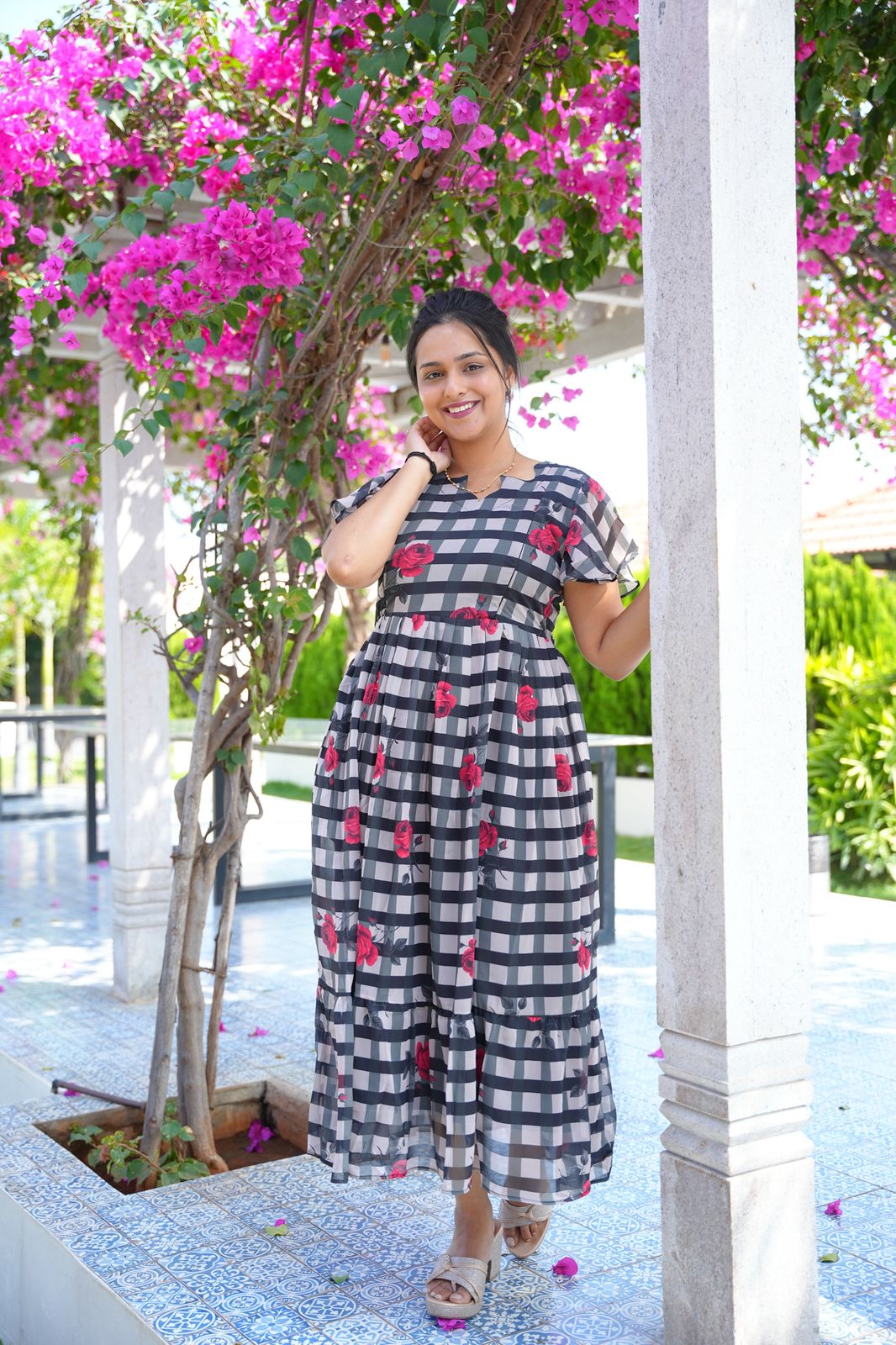 ROSETTE CHECK | MATERNITY GEORGETTE MAXI ANKLE LENGTH