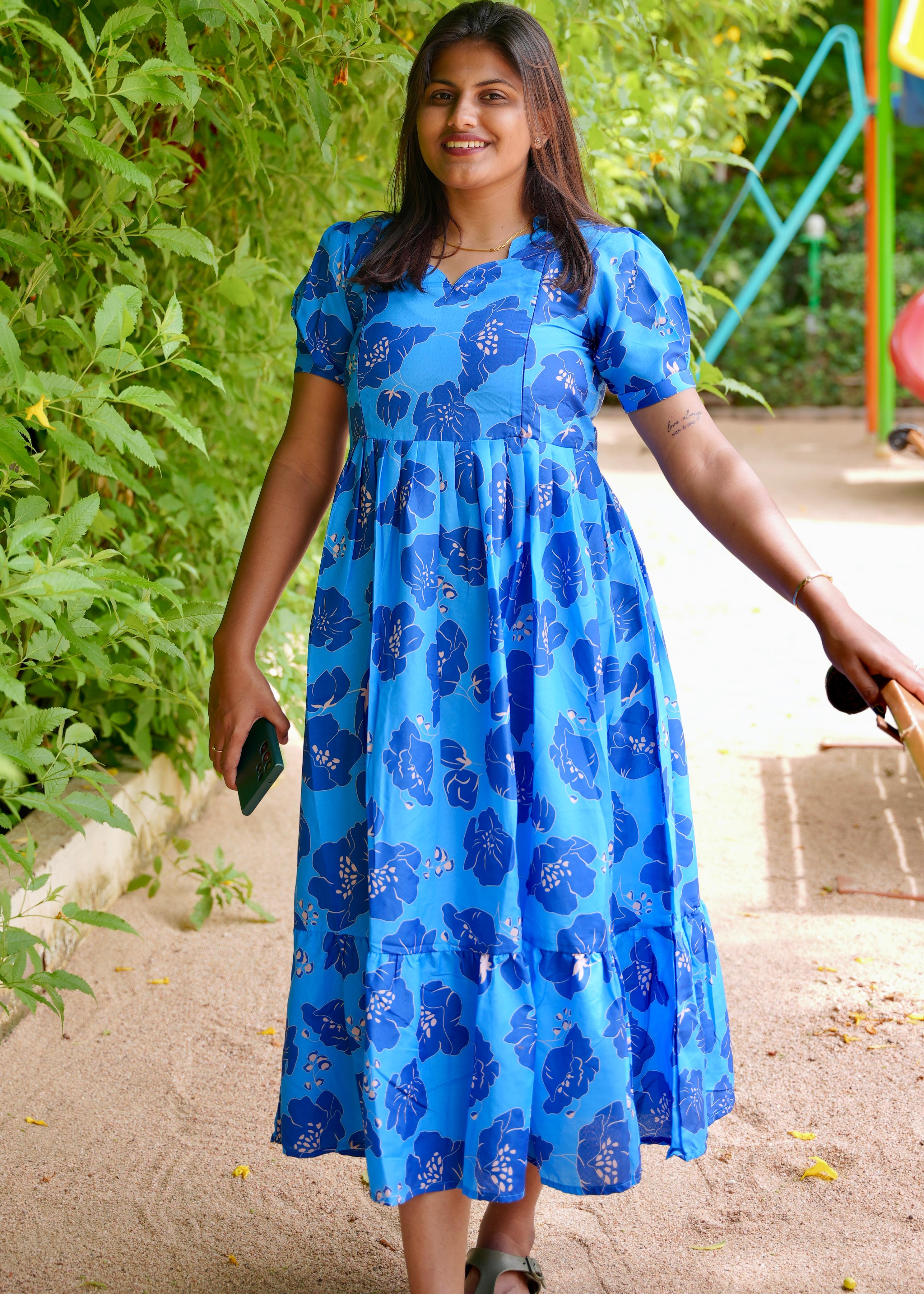 BLUE FLORAL | MATERNITY MAXI ANKLE LENGTH