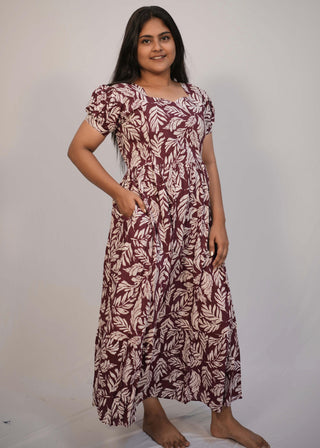 MAROON LEAF | MATERNITY COTTON MAXI ANKLE LENGTH