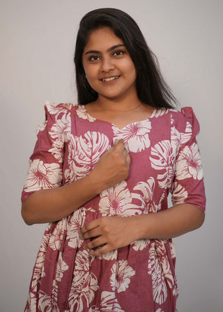 PINK HIBISCUS | MATERNITY COTTON MAXI ANKLE LENGTH