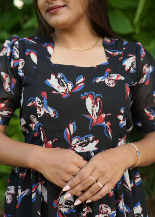 BLACK RED FLORAL | MATERNITY GEORGETTE MAXI ANKLE LENGTH