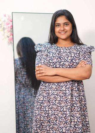 NAVY TINY GARDEN | NON-FEEDING MAXI – PUFF SLEEVES | FULL LENGTH MAXI
