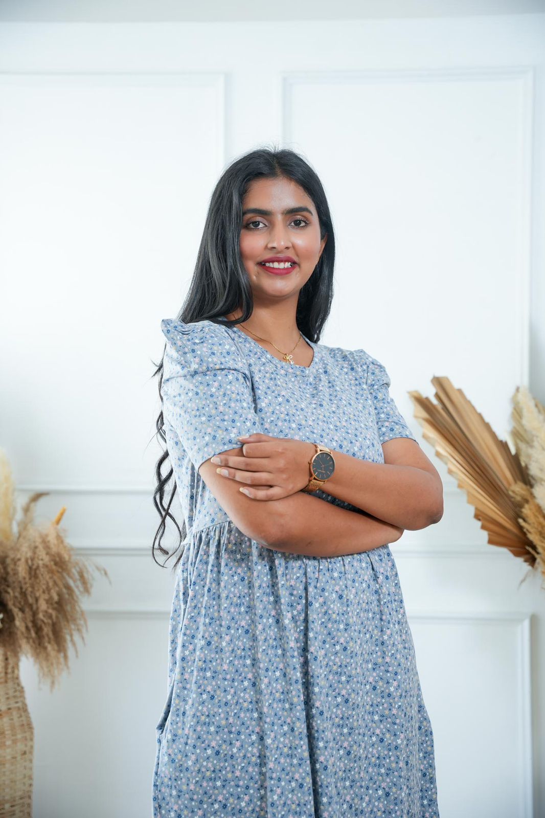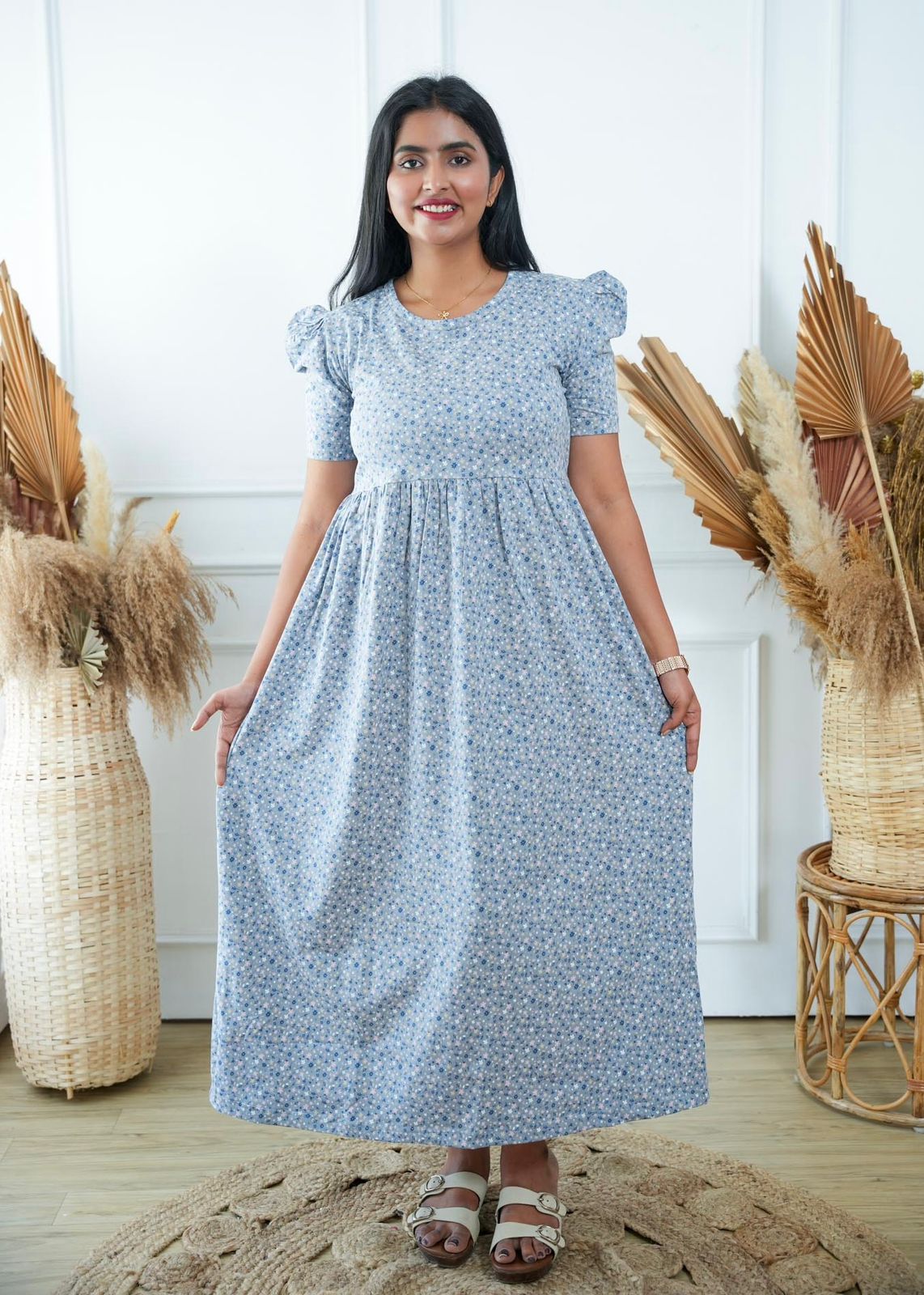 GREY BLUE FLOWERS | NON-FEEDING MAXI – PUFF SLEEVES | FULL LENGTH MAXI