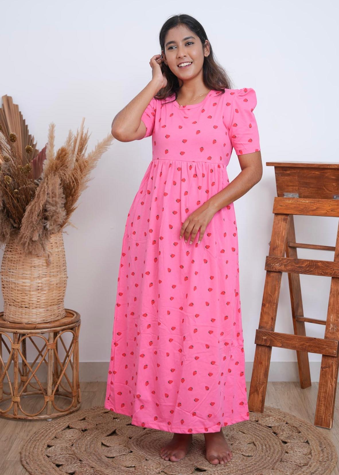 PINK BERRIES | NON-FEEDING MAXI – PUFF SLEEVES | FULL LENGTH MAXI