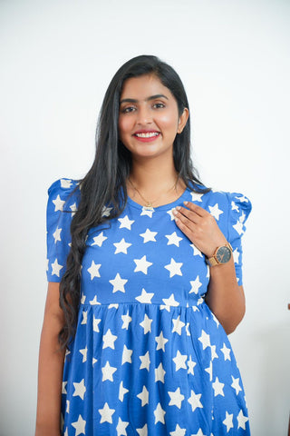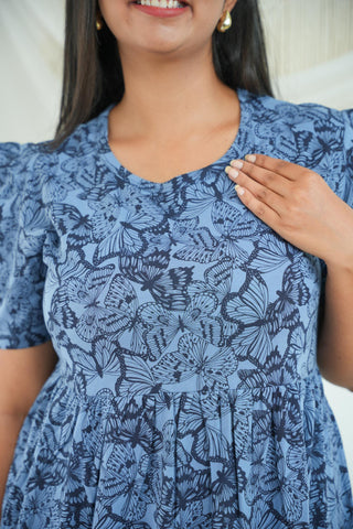 BLUE BUTTERFLY | NON-FEEDING MAXI – PUFF SLEEVES | FULL LENGTH MAXI