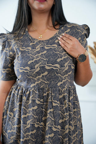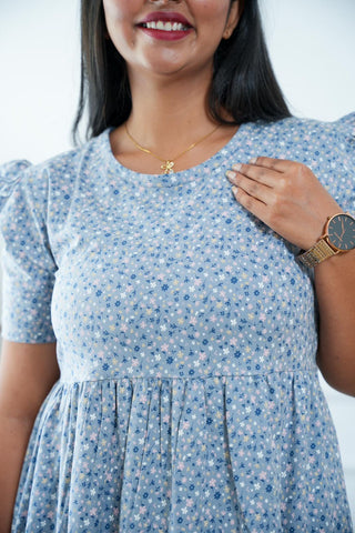 GREY BLUE FLOWERS | NON-FEEDING MAXI – PUFF SLEEVES | FULL LENGTH MAXI