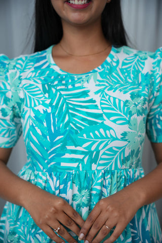 TEAL GREEN LEAF | NON-FEEDING MAXI – PUFF SLEEVES | FULL LENGTH MAXI