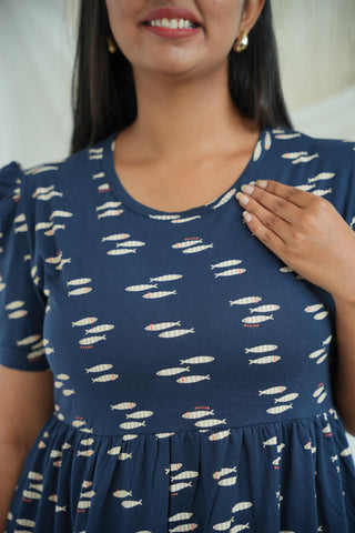 NAVY FISH | NON-FEEDING MAXI – PUFF SLEEVES | FULL LENGTH MAXI