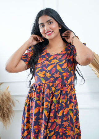 BLUE ORANGE FLORAL | NON-FEEDING MAXI – PUFF SLEEVES | FULL LENGTH MAXI