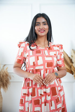 SQUARES | NON-FEEDING MAXI – PUFF SLEEVES | FULL LENGTH MAXI