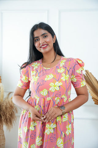 PEACH FLOWERS | NON-FEEDING MAXI – PUFF SLEEVES | FULL LENGTH MAXI
