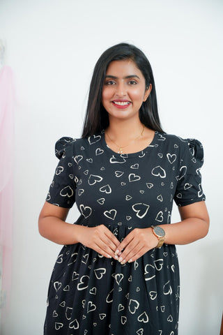 BLACK HEARTS | NON-FEEDING MAXI – PUFF SLEEVES | FULL LENGTH MAXI