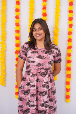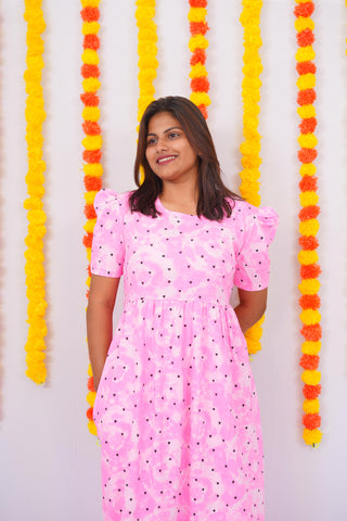 PINK BLACK HEART | NON-FEEDING MAXI – PUFF SLEEVES | ANKLE LENGTH MAXI
