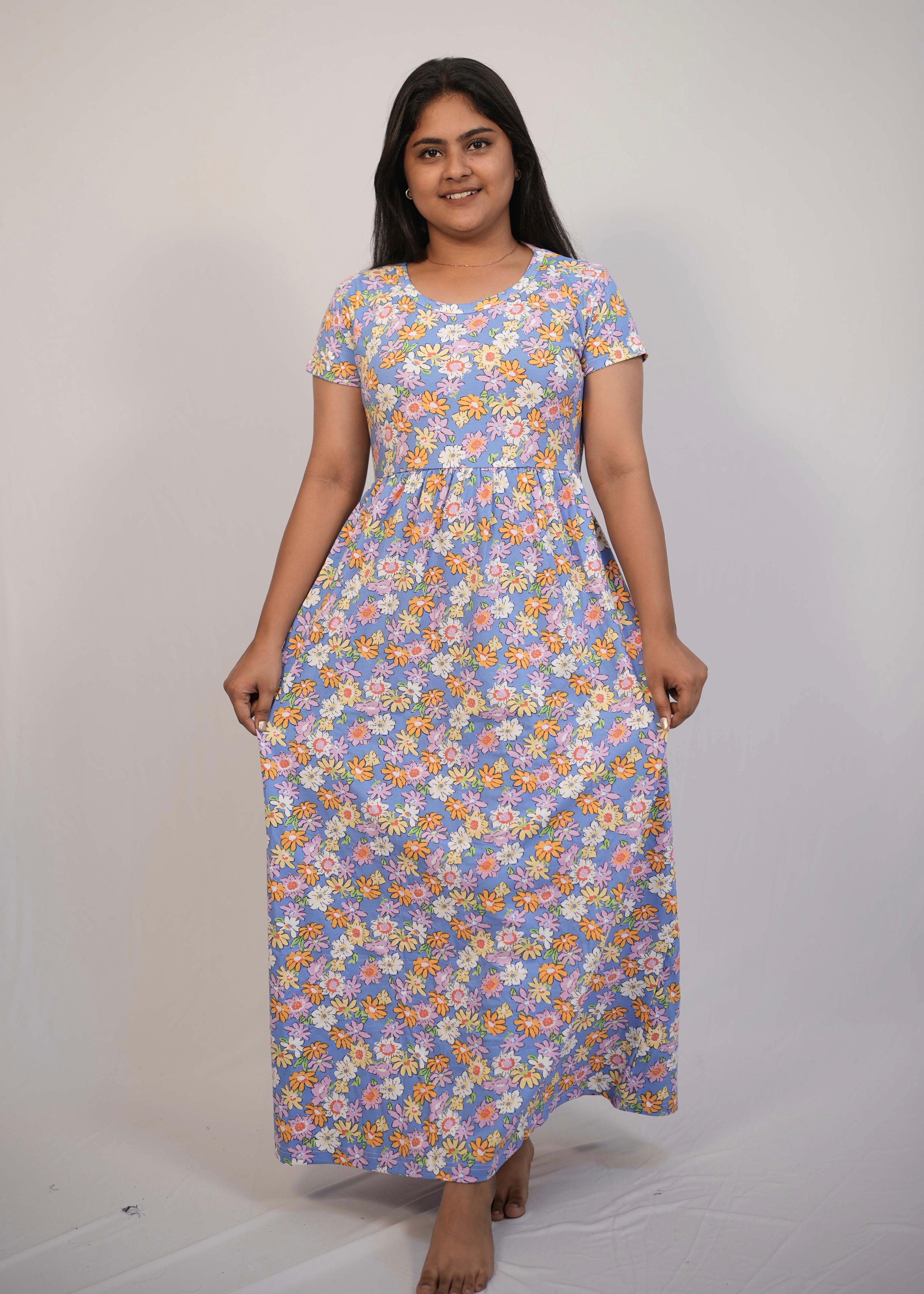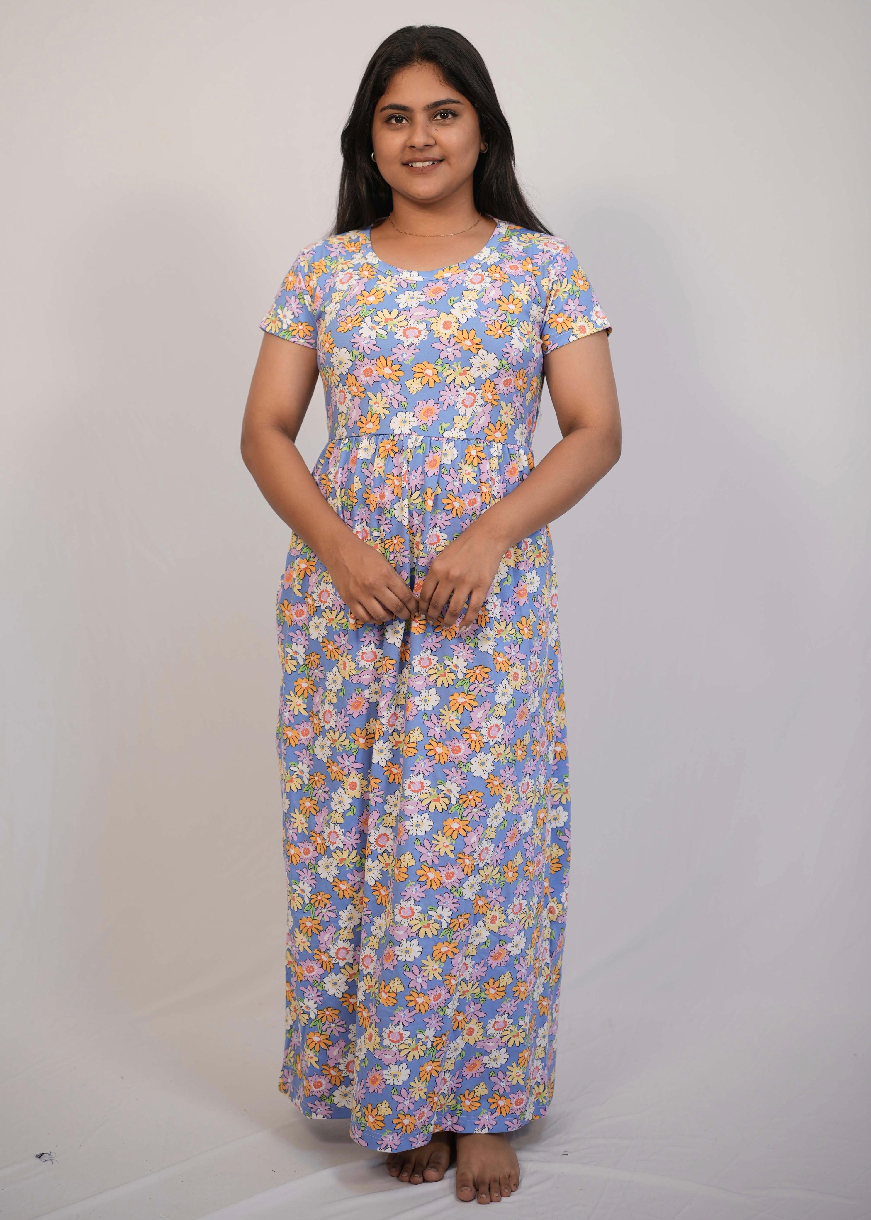 MULTI FLORAL | NON-FEEDING MAXI – SHORT SLEEVES | ANKLE LENGTH MAXI