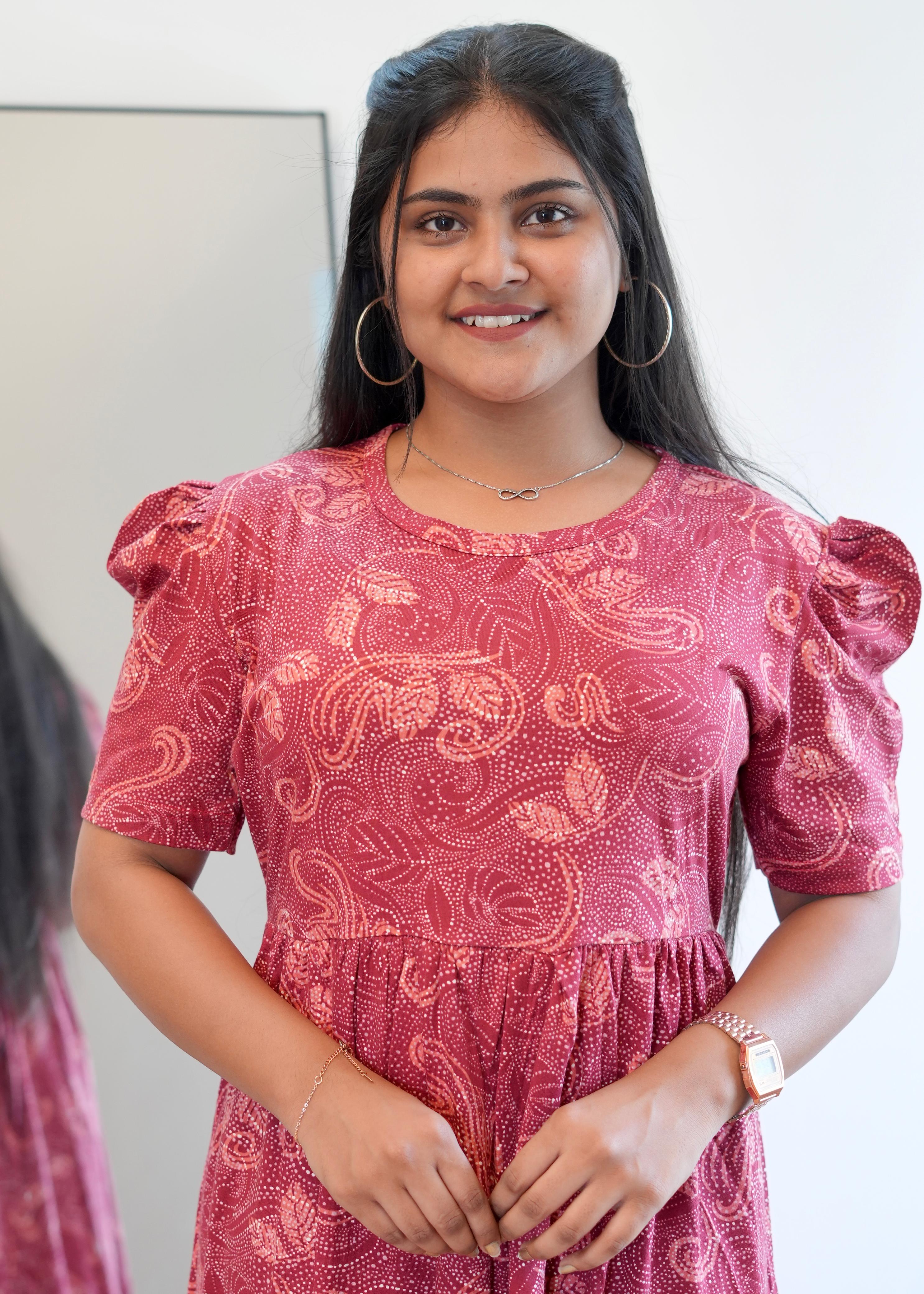 BREEZY RED | NON-FEEDING MAXI – PUFF SLEEVES | ANKLE LENGTH MAXI