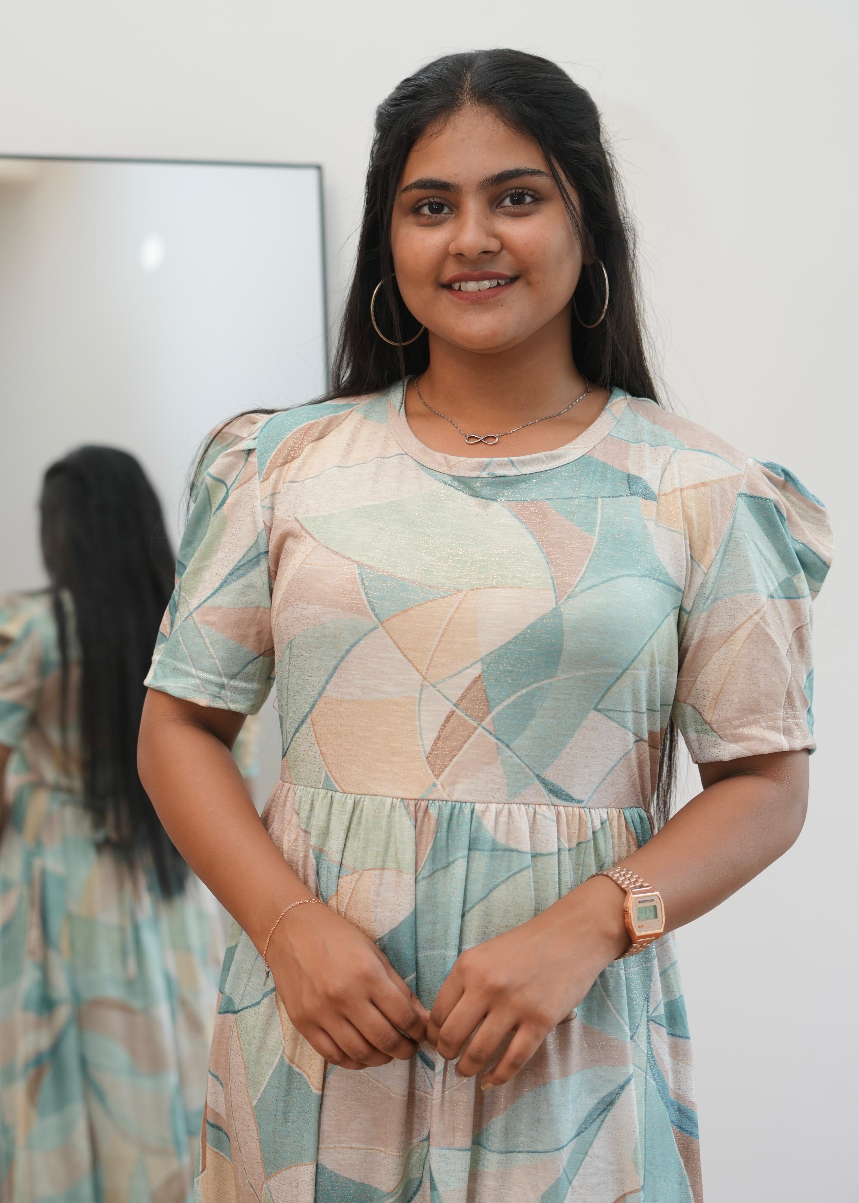 GLITTER ABSTRACT | NON-FEEDING MAXI – PUFF SLEEVES | ANKLE LENGTH MAXI