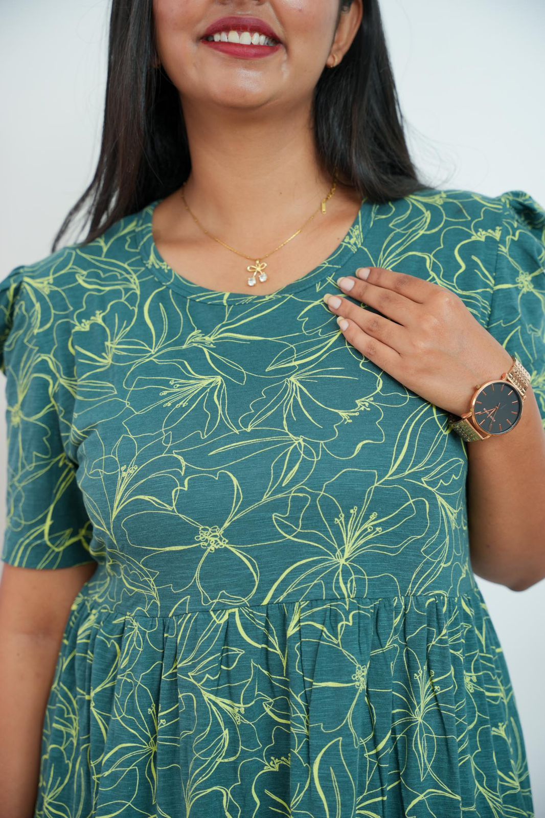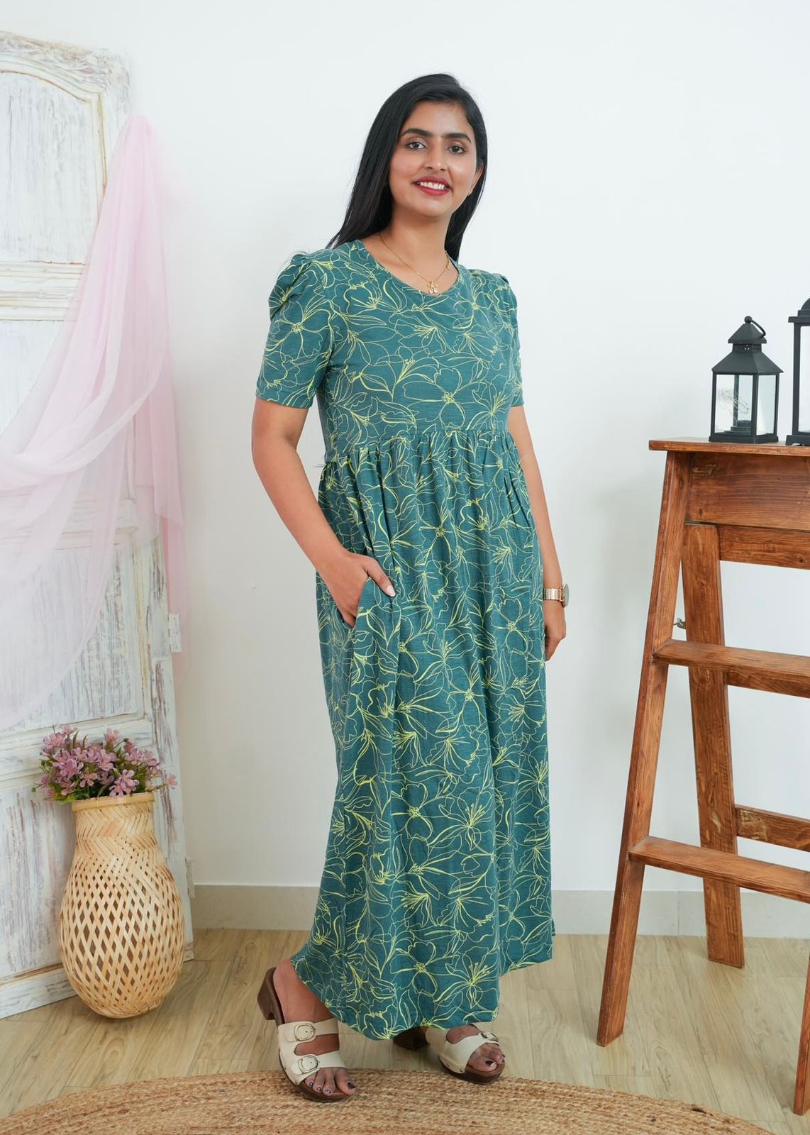 GREEN LEAF | NON-FEEDING MAXI – PUFF SLEEVES | FULL LENGTH MAXI