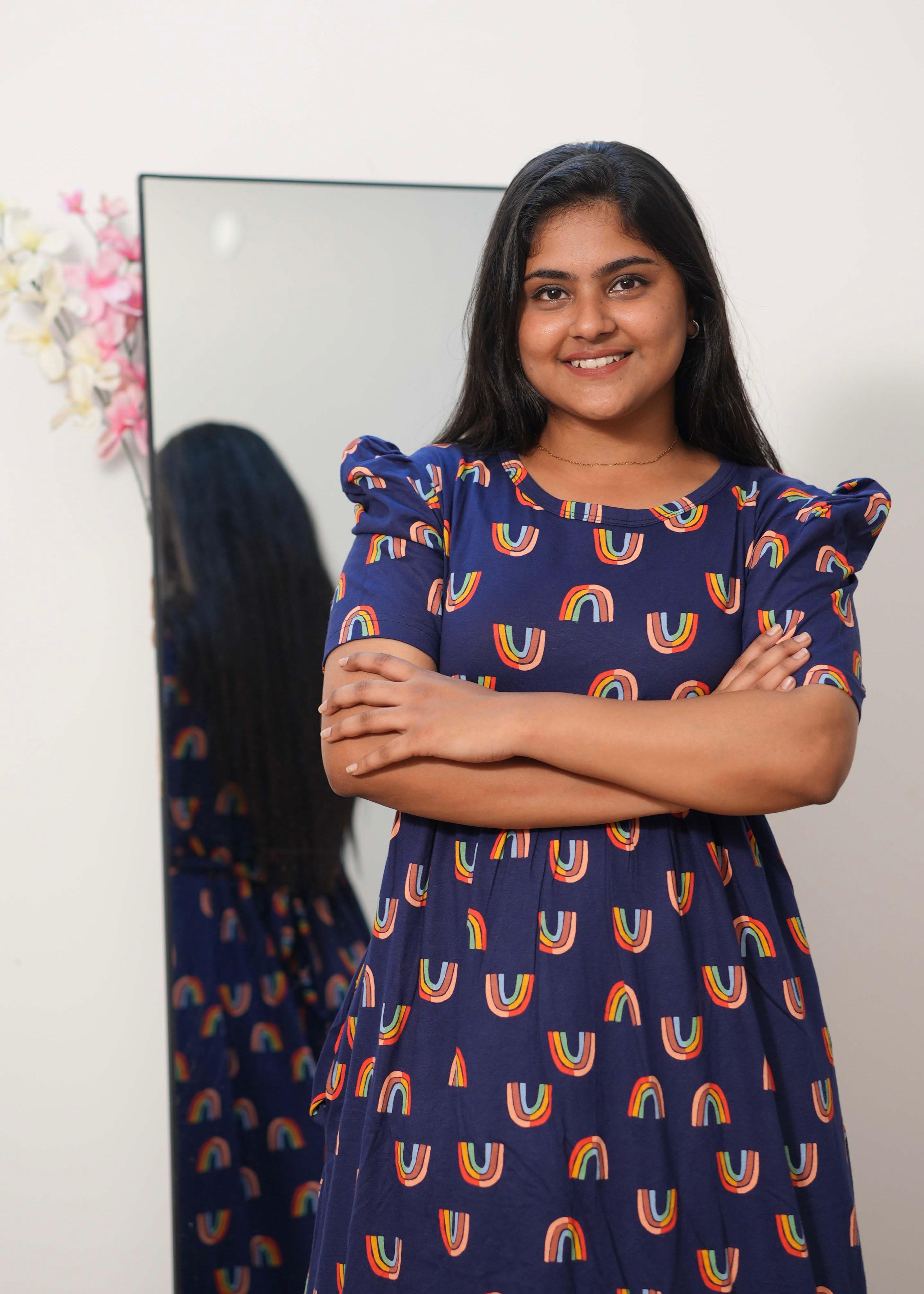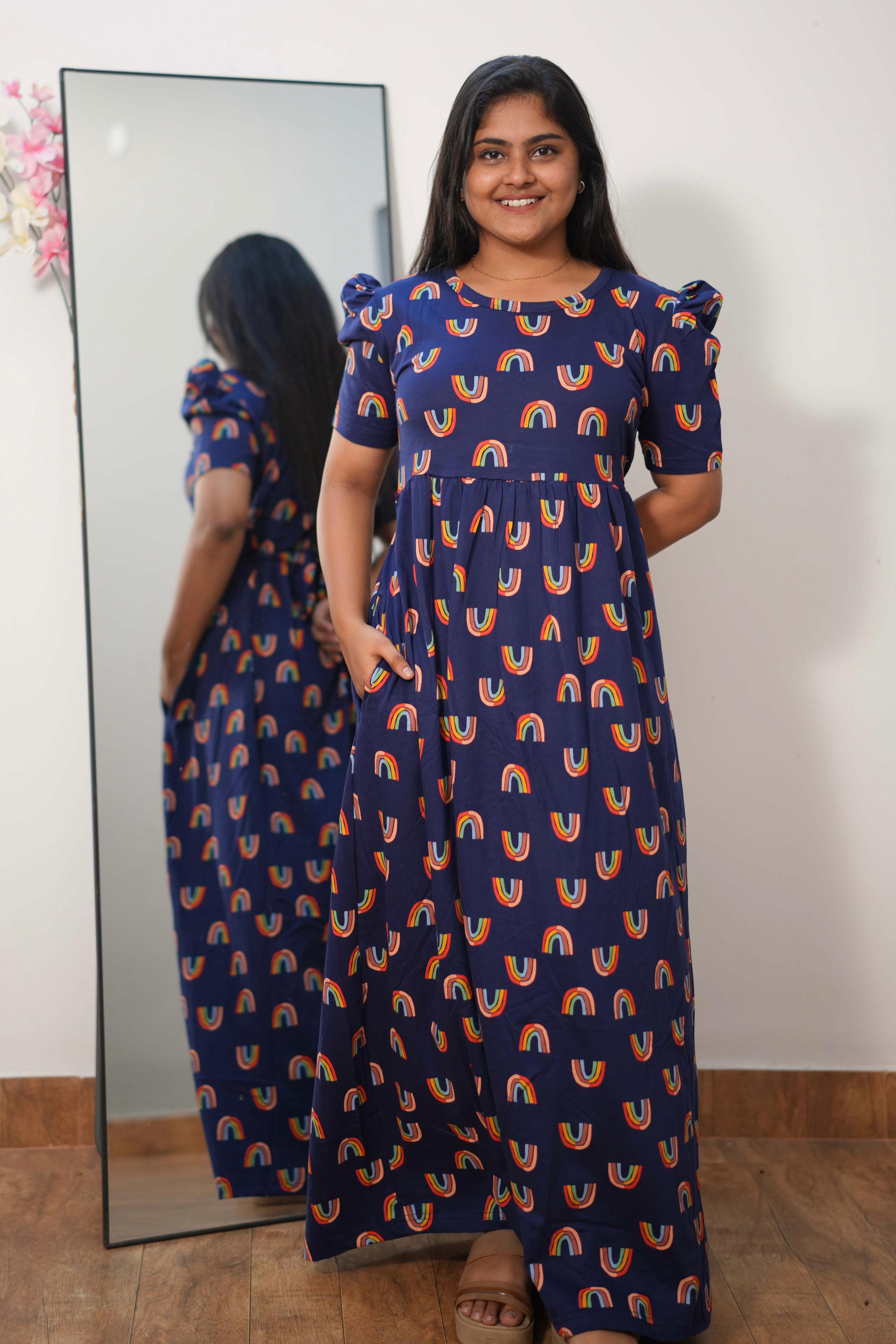 BLUE RAINBOW | NON-FEEDING MAXI – PUFF SLEEVES | FULL LENGTH MAXI