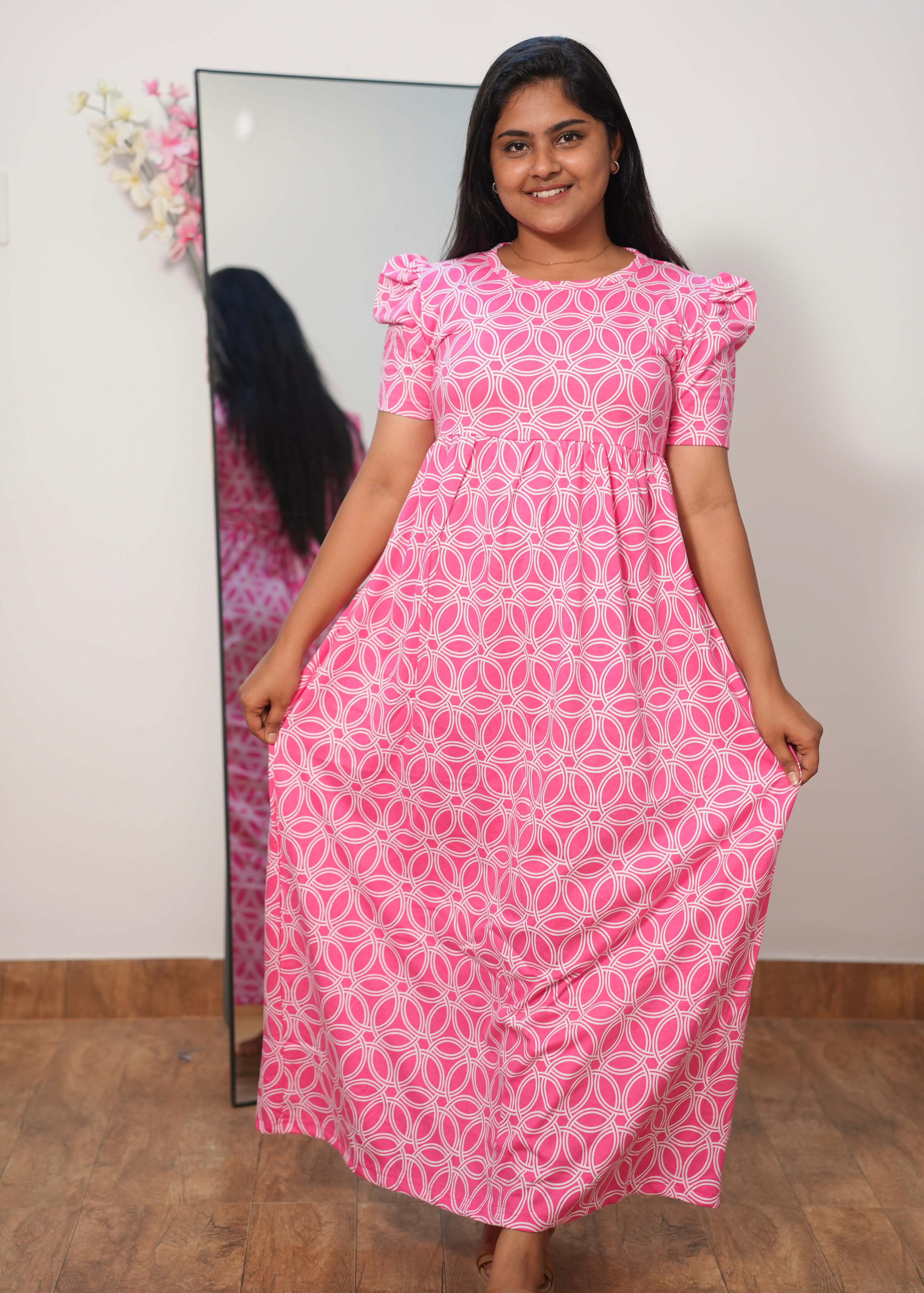 PINK TRELIS | NON-FEEDING MAXI – SHORT SLEEVES | FULL LENGTH MAXI