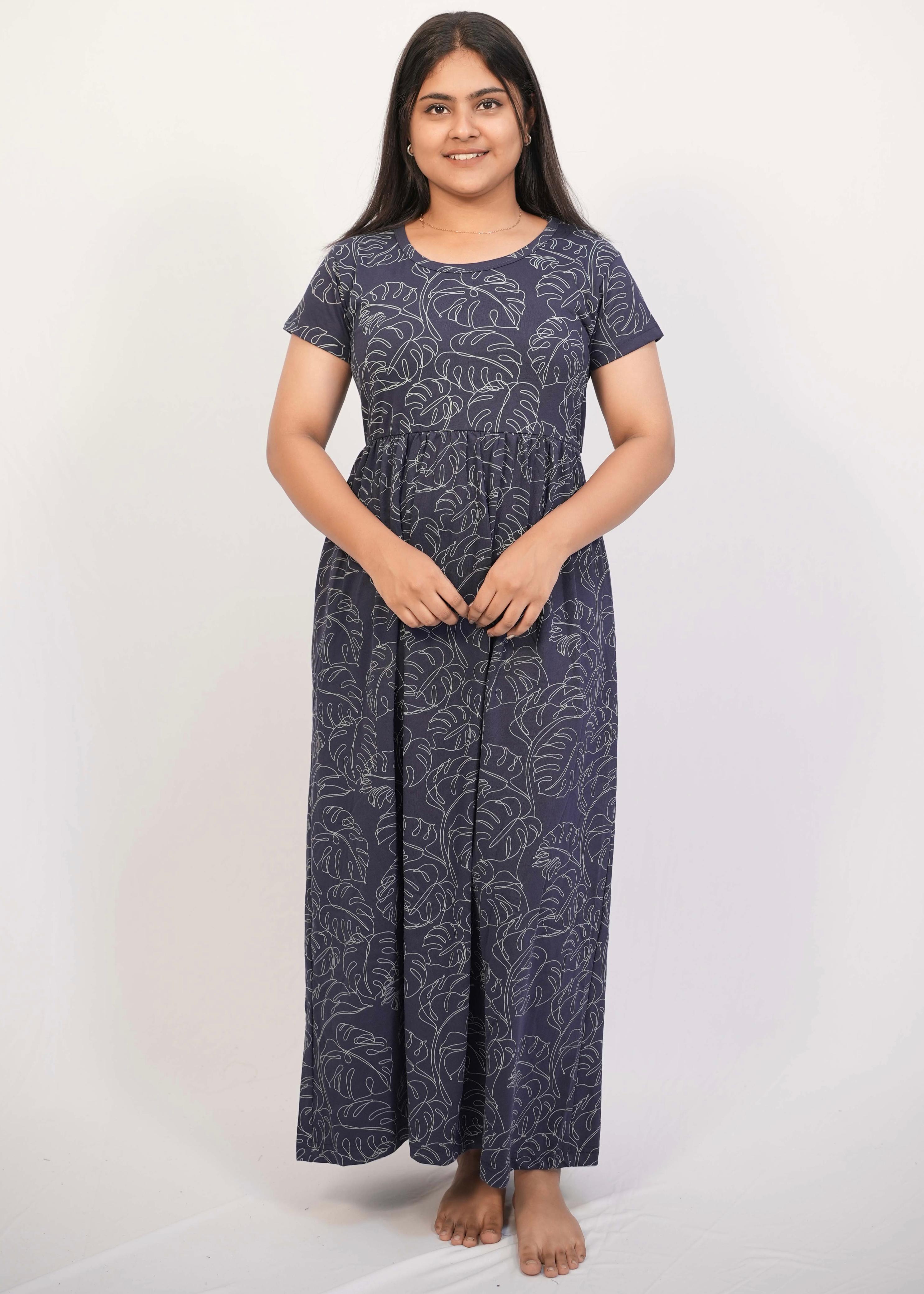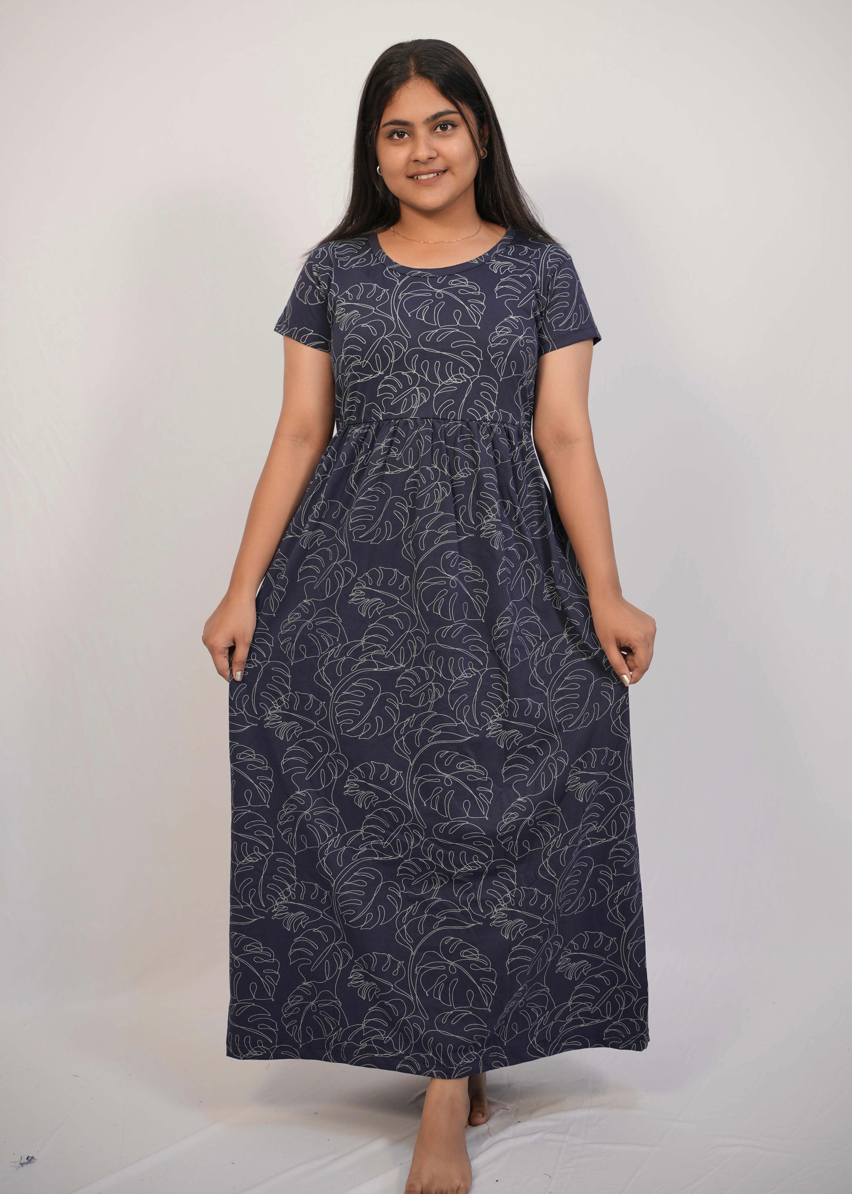 SCRIBBLED LEAF | NON-FEEDING MAXI – SHORT SLEEVES | ANKLE LENGTH MAXI