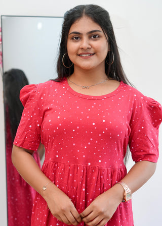 RED DOTS | NON-FEEDING MAXI – PUFF SLEEVES | ANKLE LENGTH MAXI