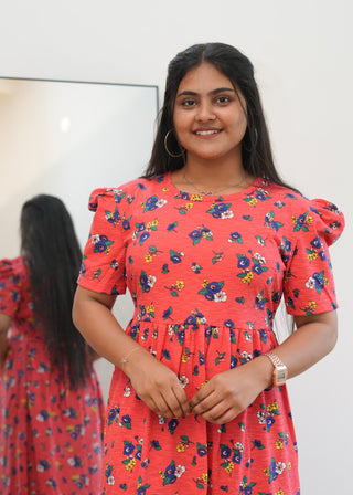 RED YELLOW FLOWERS | NON-FEEDING MAXI – PUFF SLEEVES | ANKLE LENGTH MAXI