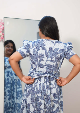INDIGO GARDEN | NON-FEEDING MAXI –PUFF SLEEVES | FULL LENGTH MAXI