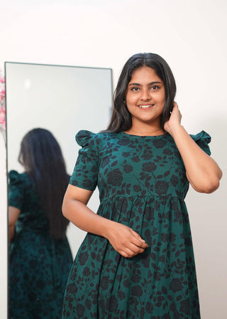 GREEN ROSE | NON-FEEDING MAXI – PUFF SLEEVES | FULL LENGTH MAXI