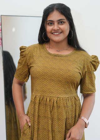 BROWNISH TRELIS | NON-FEEDING MAXI – PUFF SLEEVES | ANKLE LENGTH MAXI